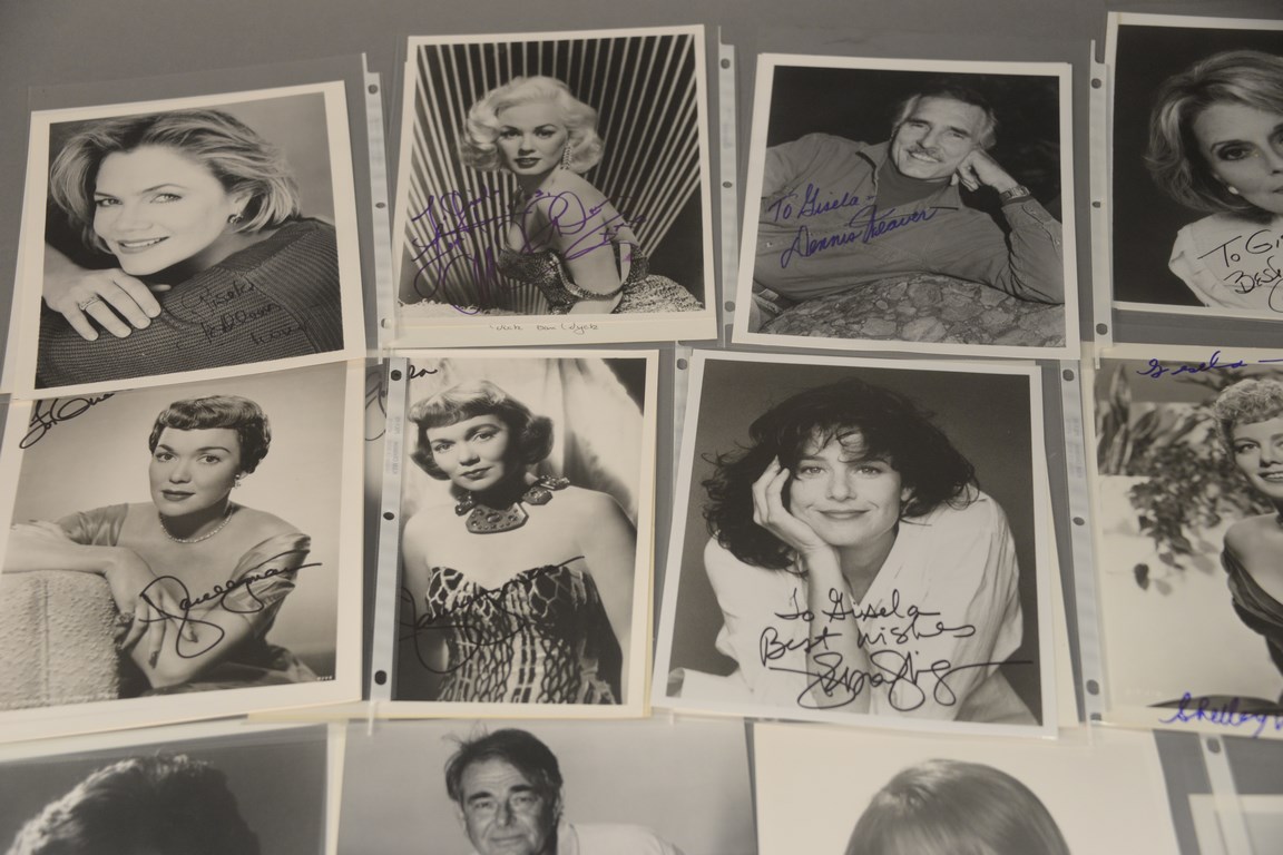 Lot 354: Group of 36 photographs, 25 are autographed photographs to include 3 Kathleen Turner, 1 Constance Towers, 1 Dick Van Dyke, 1 Mamie V…