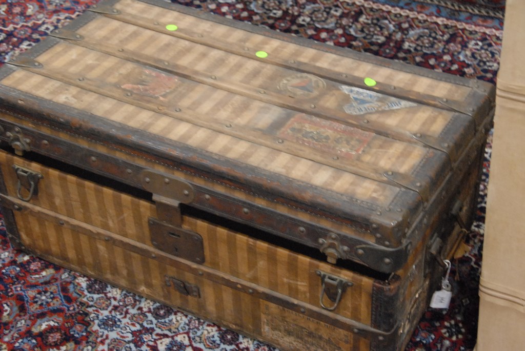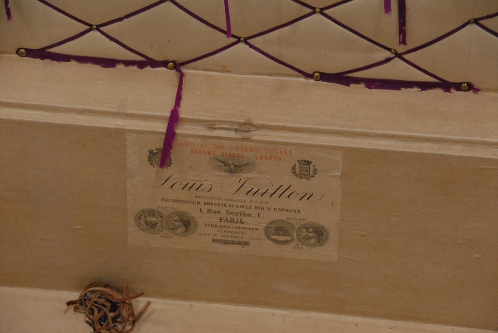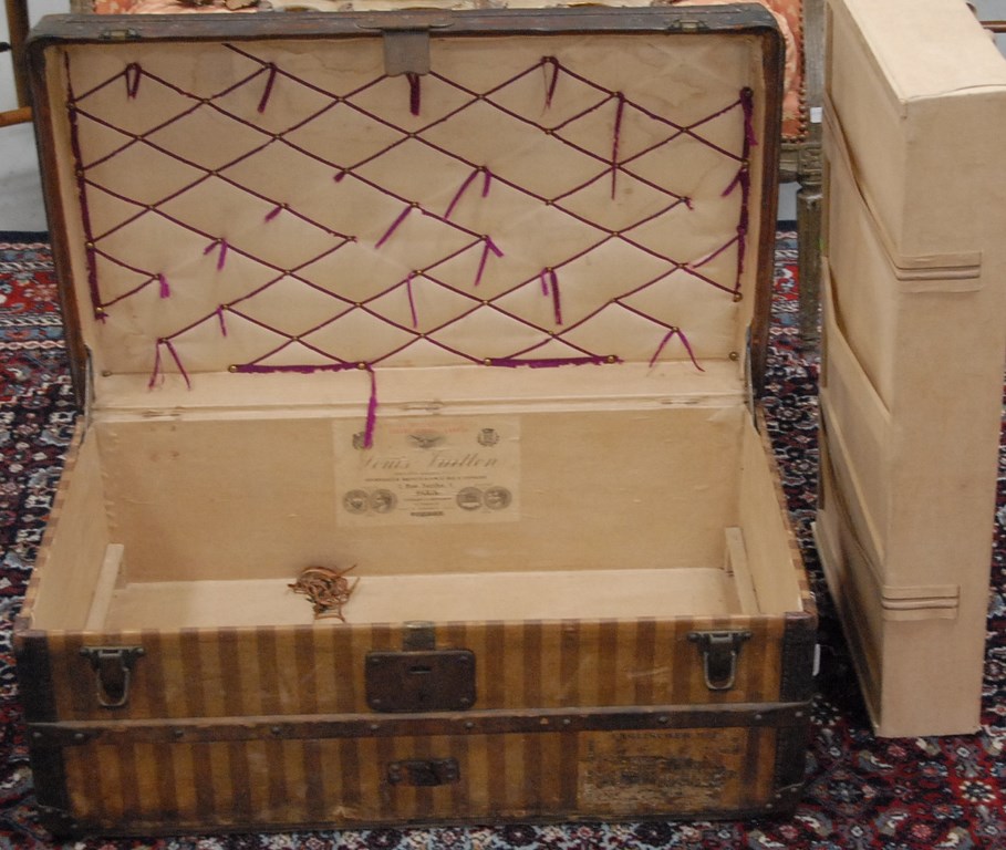 Lot 354: Louis Vuitton vintage trunk with insert tray and original label inside, No. 19447, late 19th century.