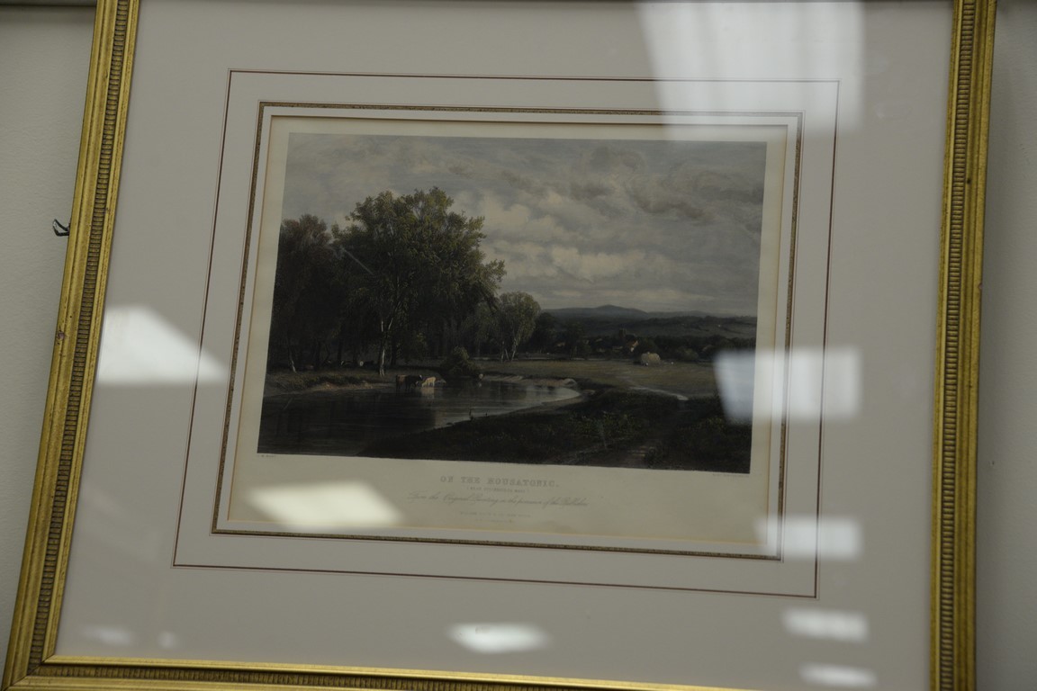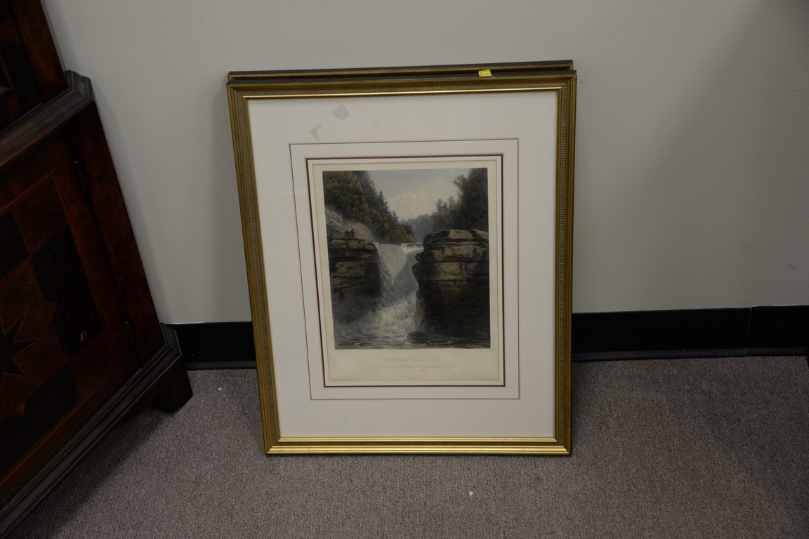 Set of Five colored lithographs including Lake George after Wm Momberger, Yosemite Valley after Thomas Hill, Chocorua Peak, White Mountains after JW Casilear, On the Housatonic, Near Stockbridge, Mass after J.M. Hart, and Trenton Falls, NY after J.F. Kensett. sight sizes: 11 x 13 3/4 and 14 3/4 x 11 Property from Credit Suisse’s Americana Collection Property from Credit Suisse’s Americana Collection