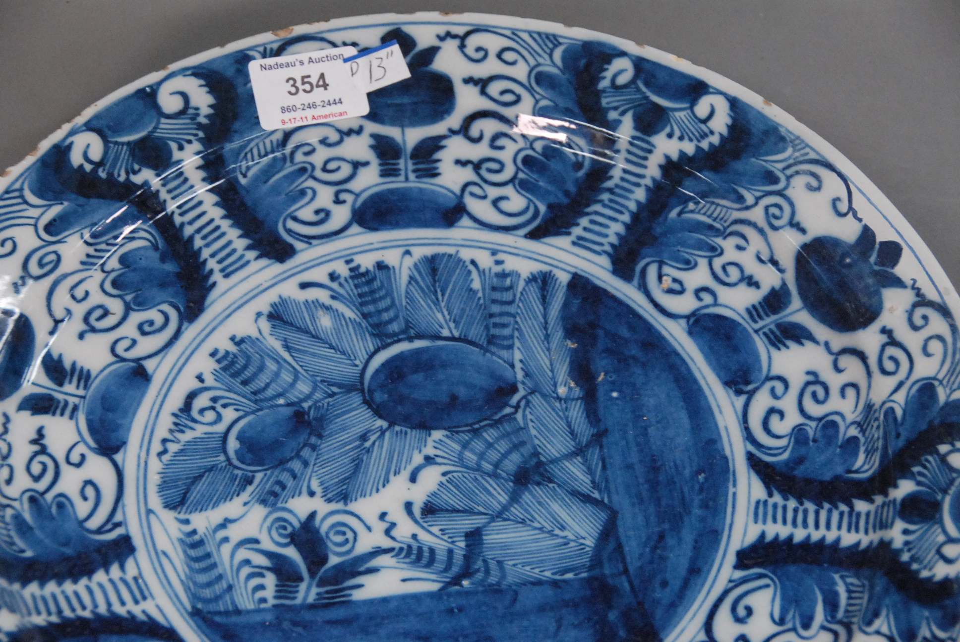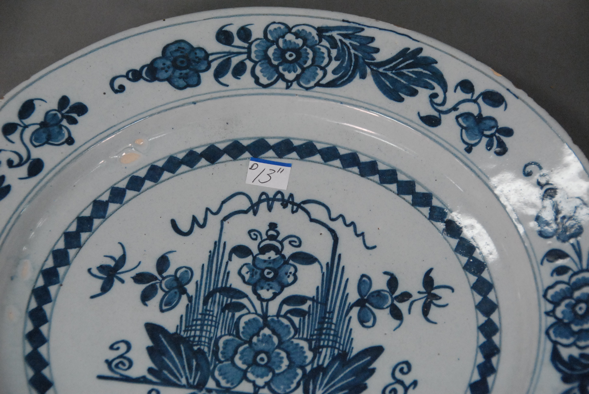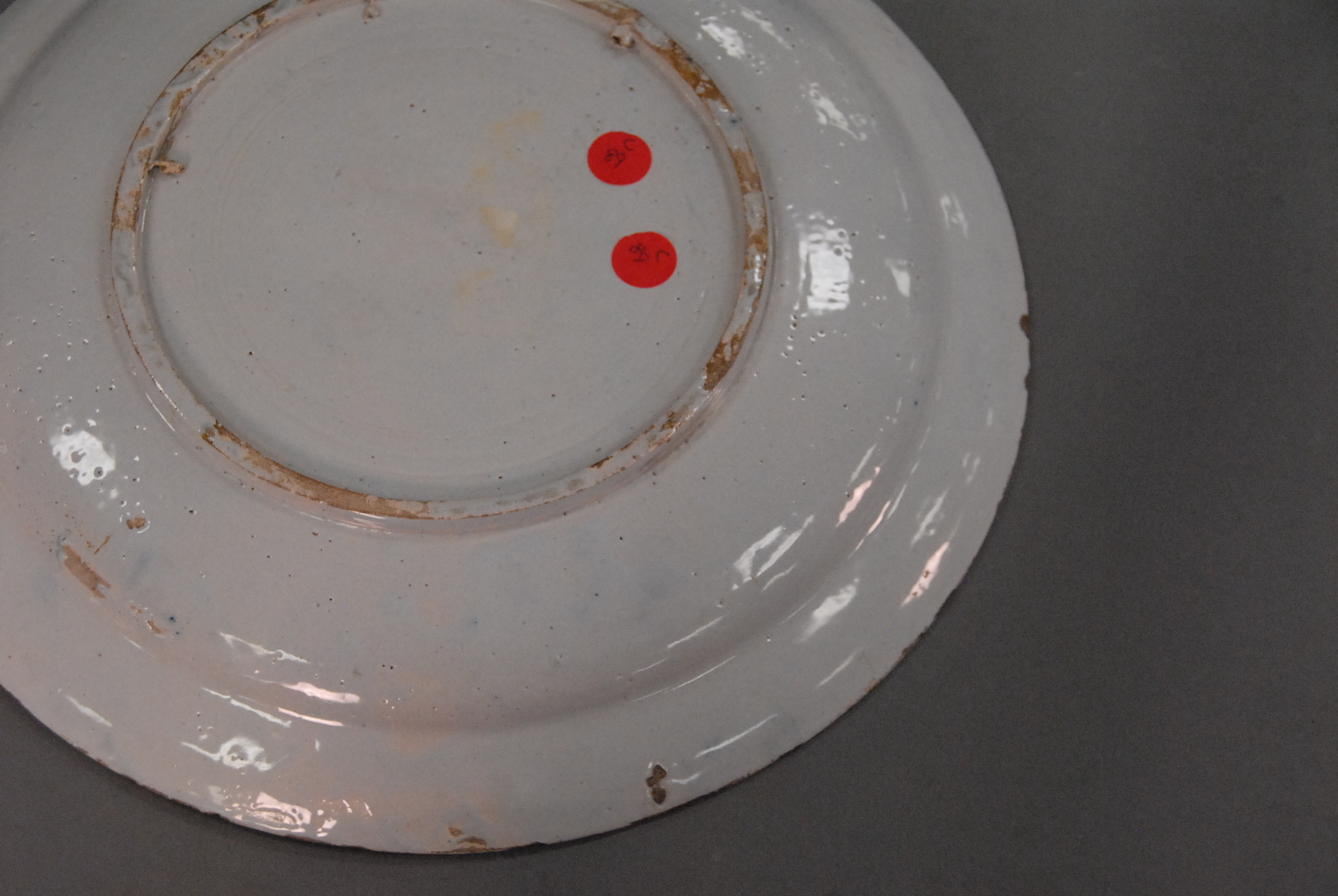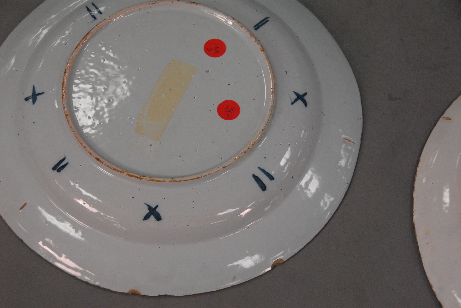 Two Delft chargers, each with blue decoration.
