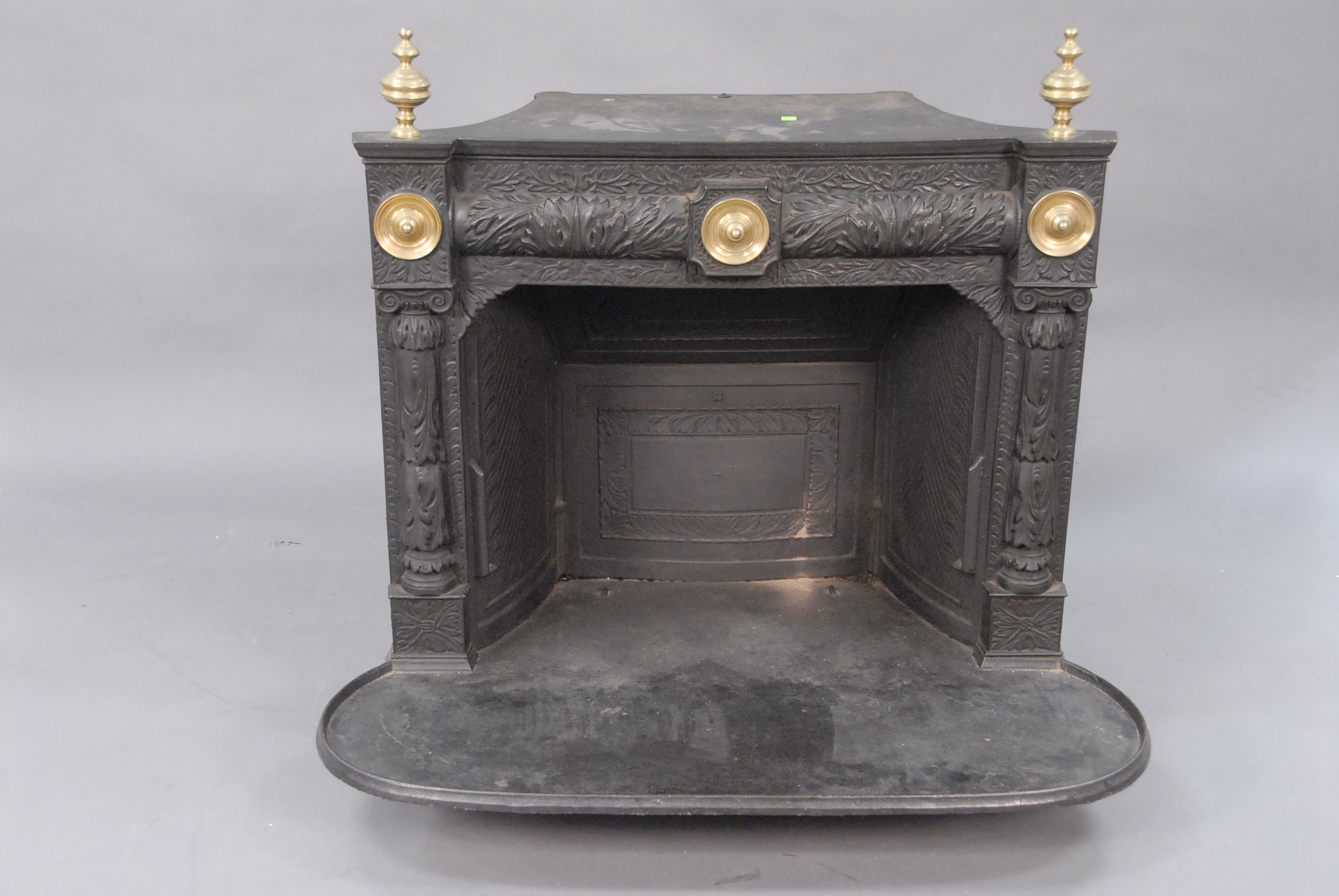 Two iron wood stoves one is insert with brass trim and other is Low and Hicks Troy NY Gothic Parlor No. 4 wood stove. Being sold to benefit a Connecticut museum.