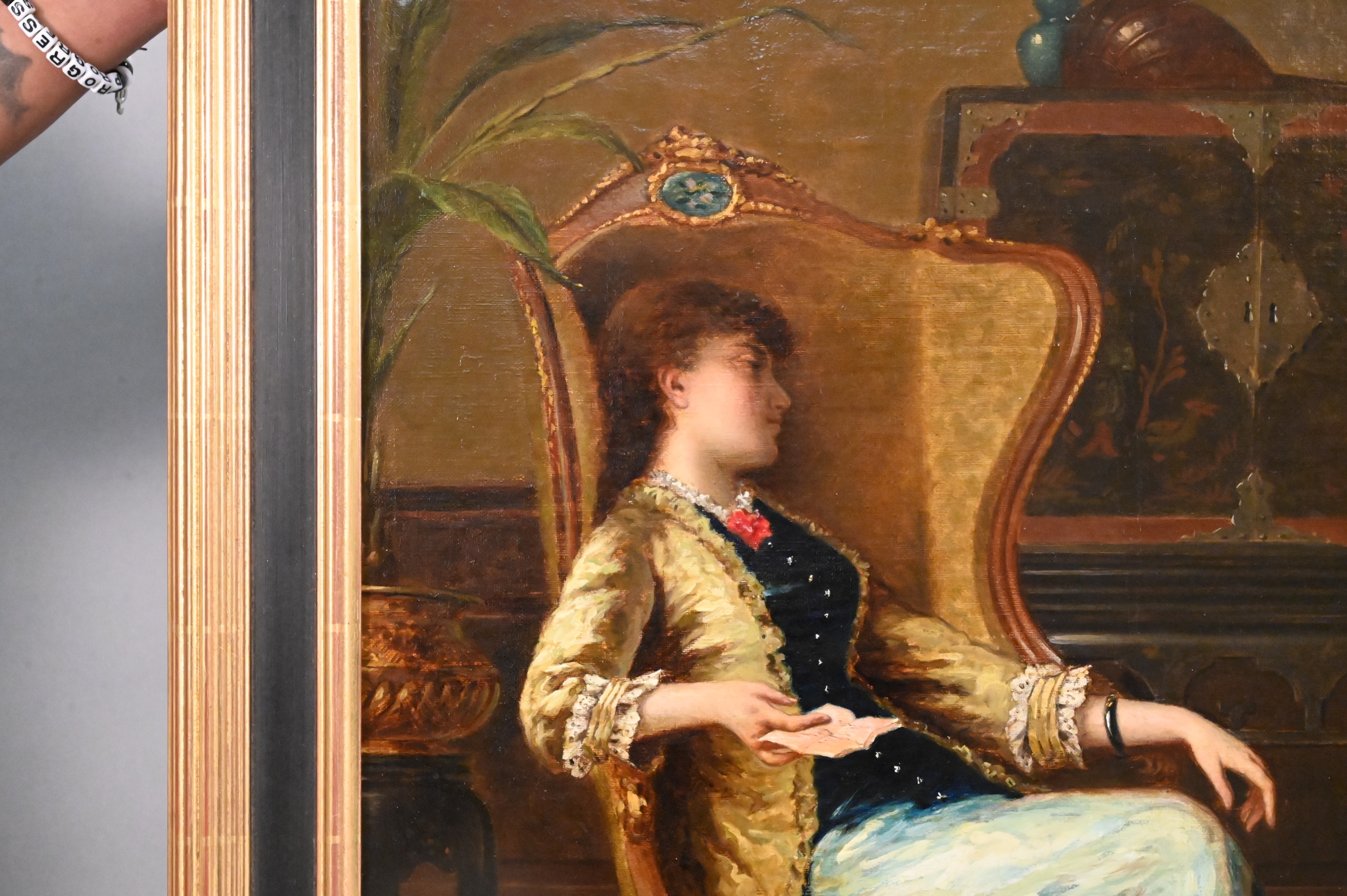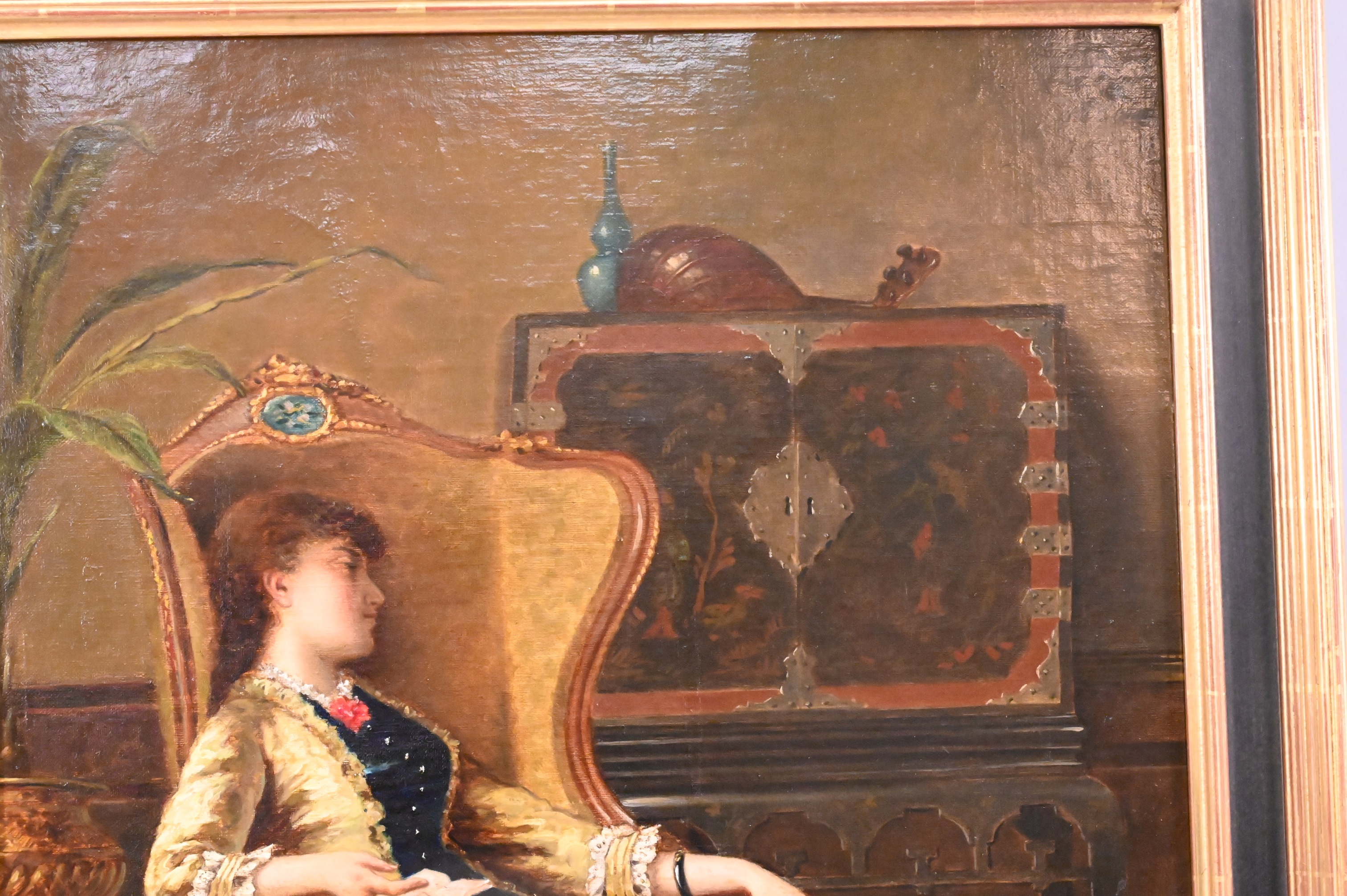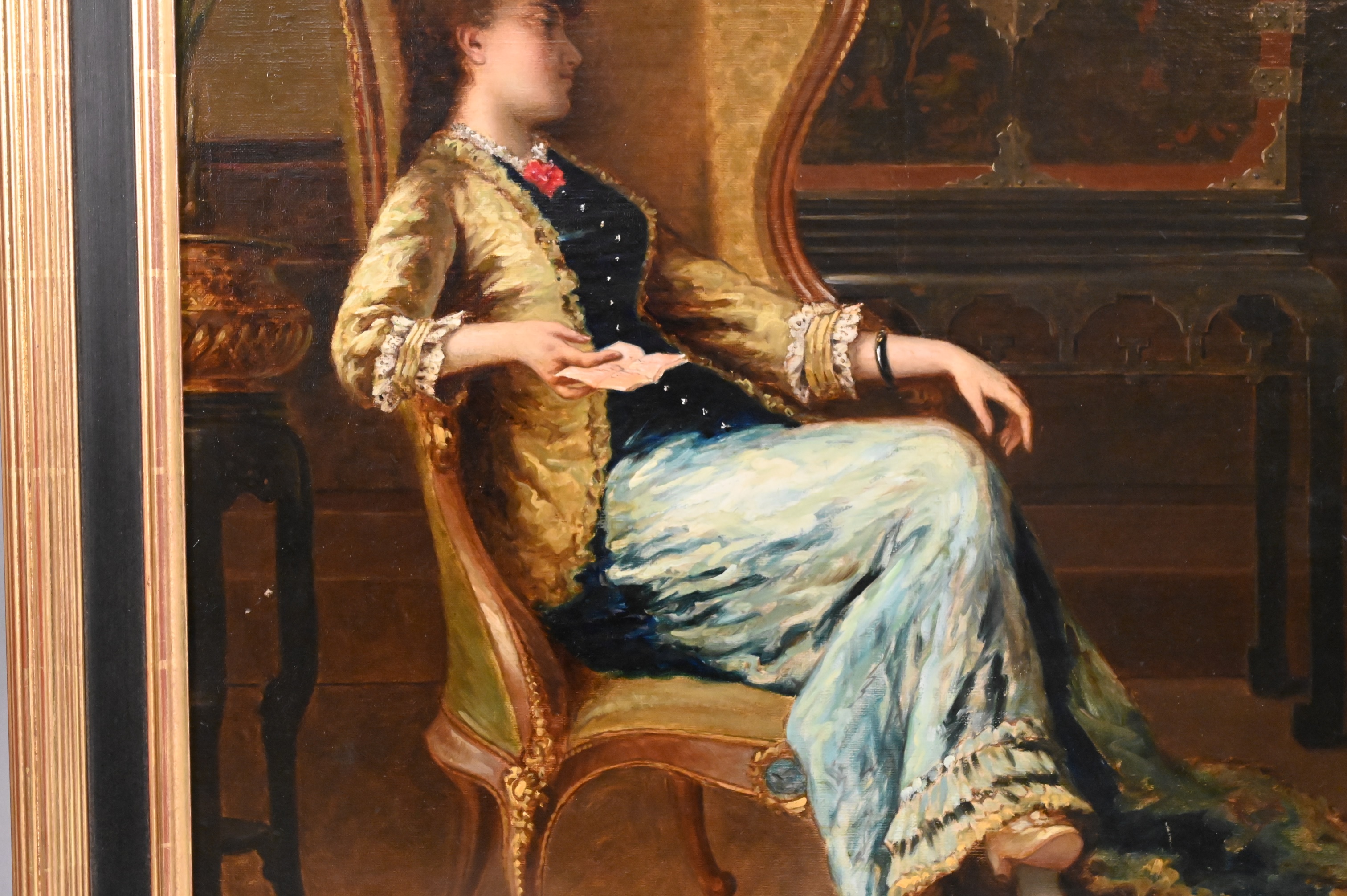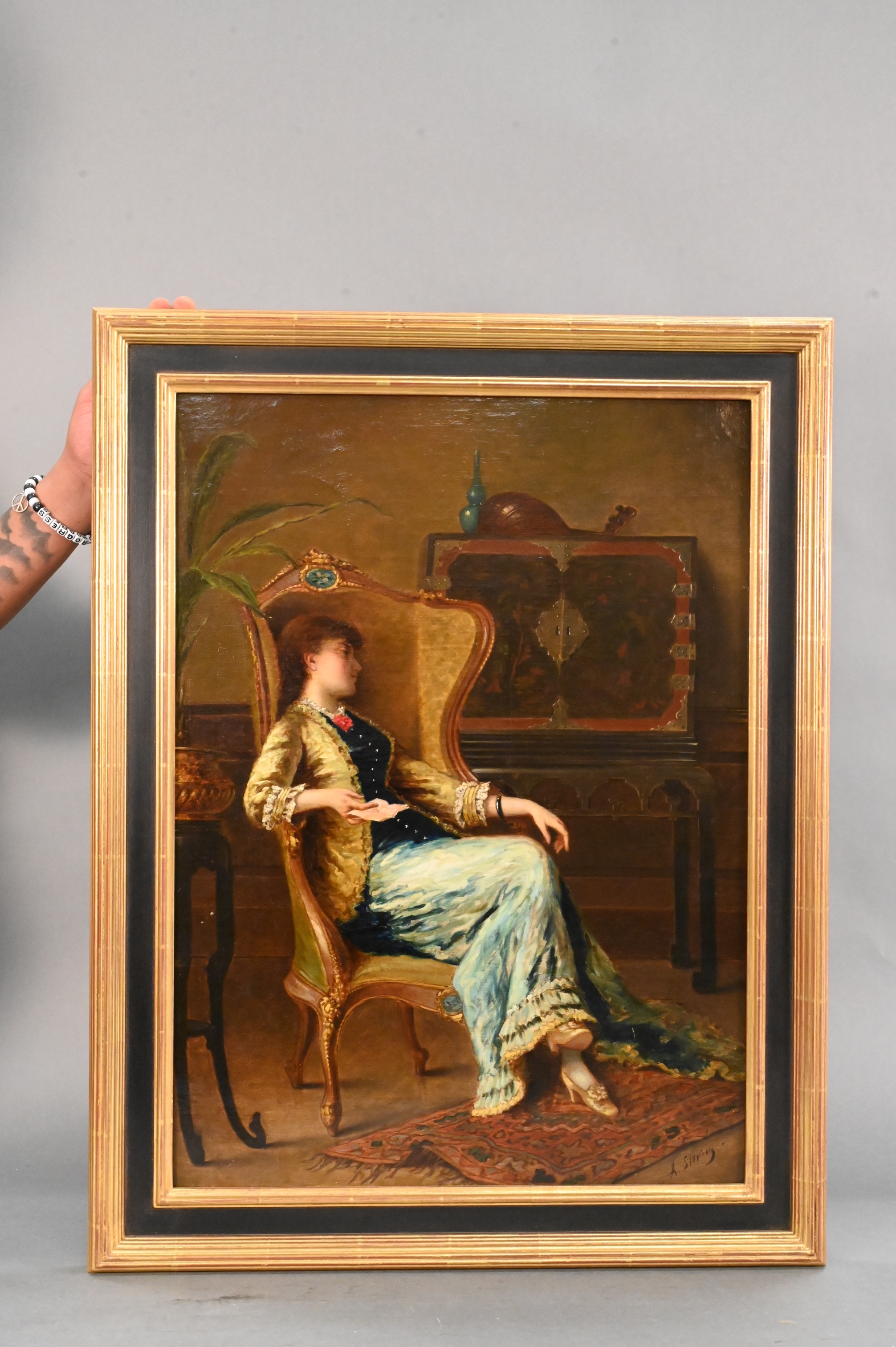 Agapit Stevens (Belgian 1848 – 1924) Genre Painter “Nap Time” oil on canvas signed “A. Stevens” lower right 27″ x 20″.