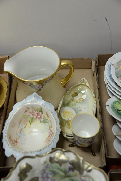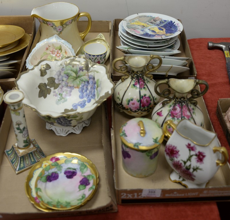 Four box lots of hand painted porcelain to include large Prussia fruit bowl, hand painted Nipoon, Limoges, etc.