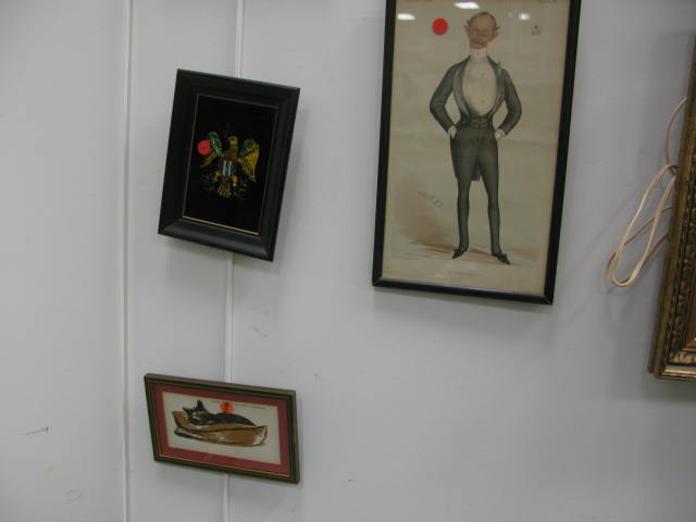 Group of eight framed pieces to include oil on canvas bust of boy, signed lower right, several prints, mirror, watercolor, etc