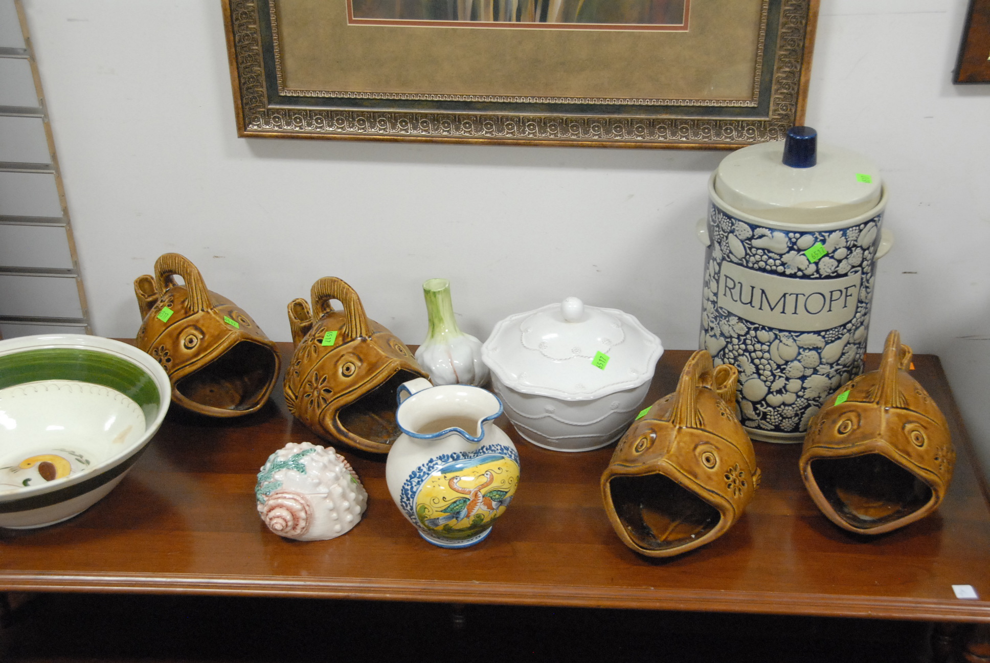 Large grouping of porcelain and ceramic items bowls, figures, serving pieces, etc.