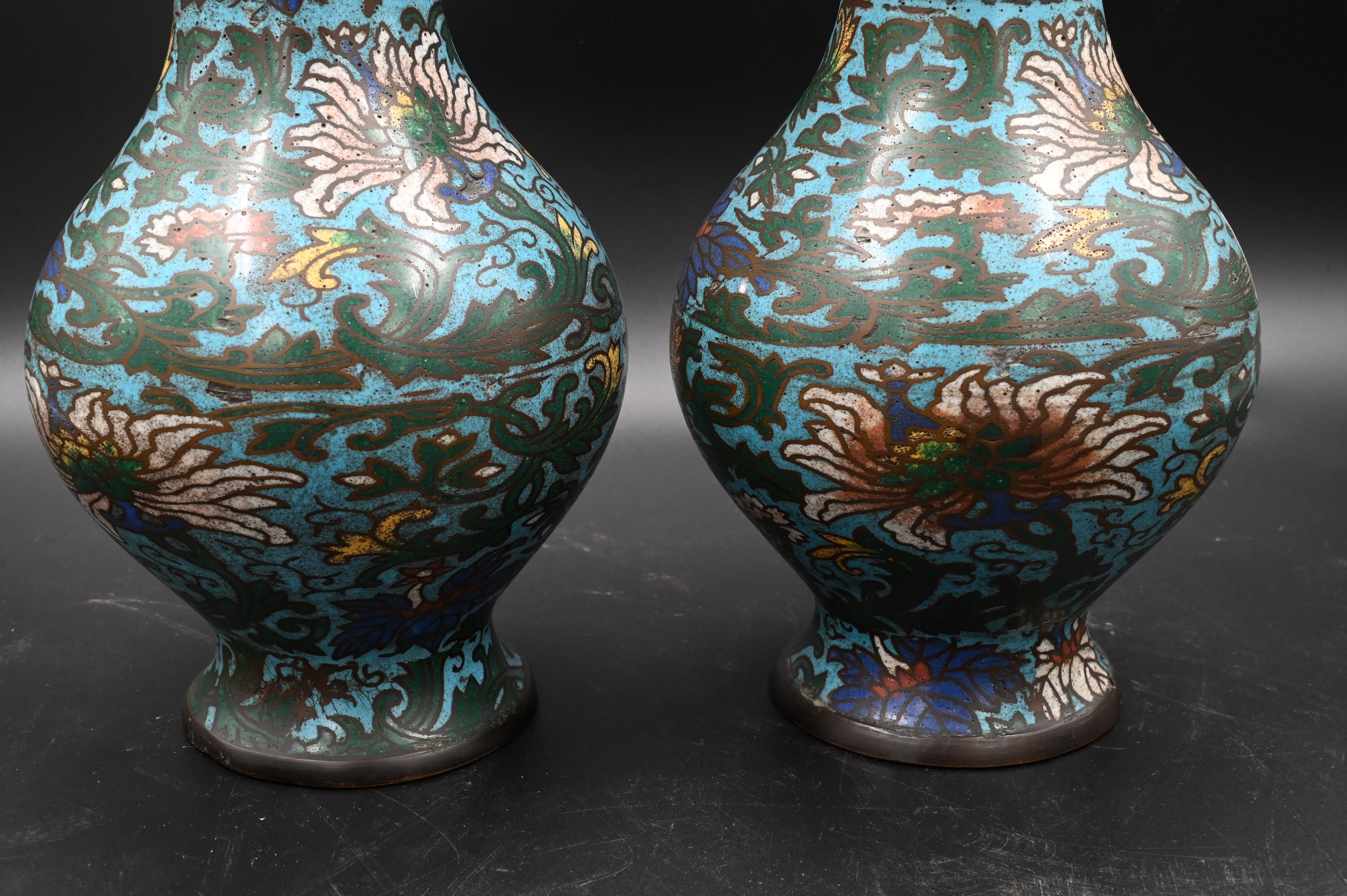 Lot 355: Pair of Chinese/Japanese Cloisonne Vases
