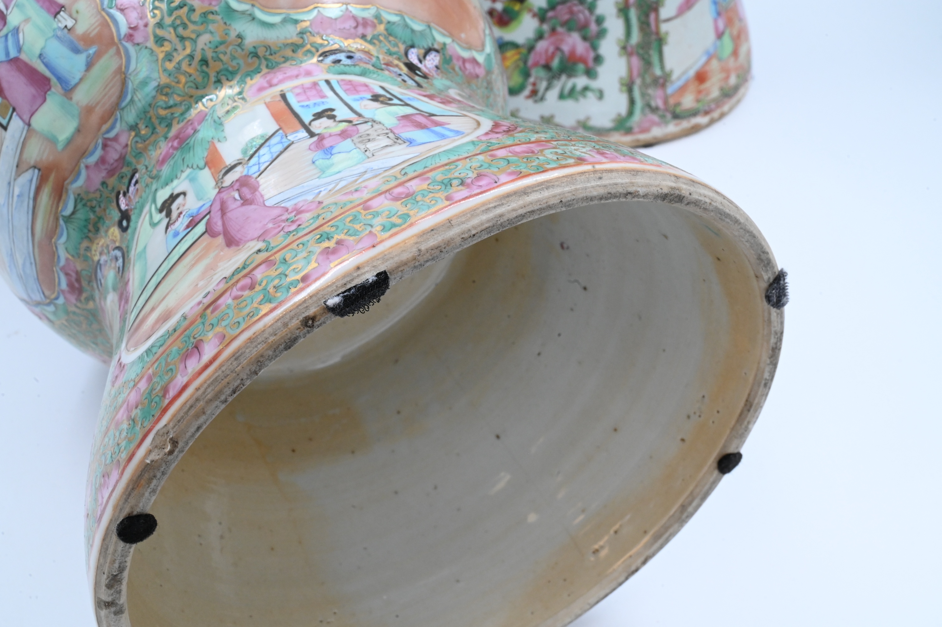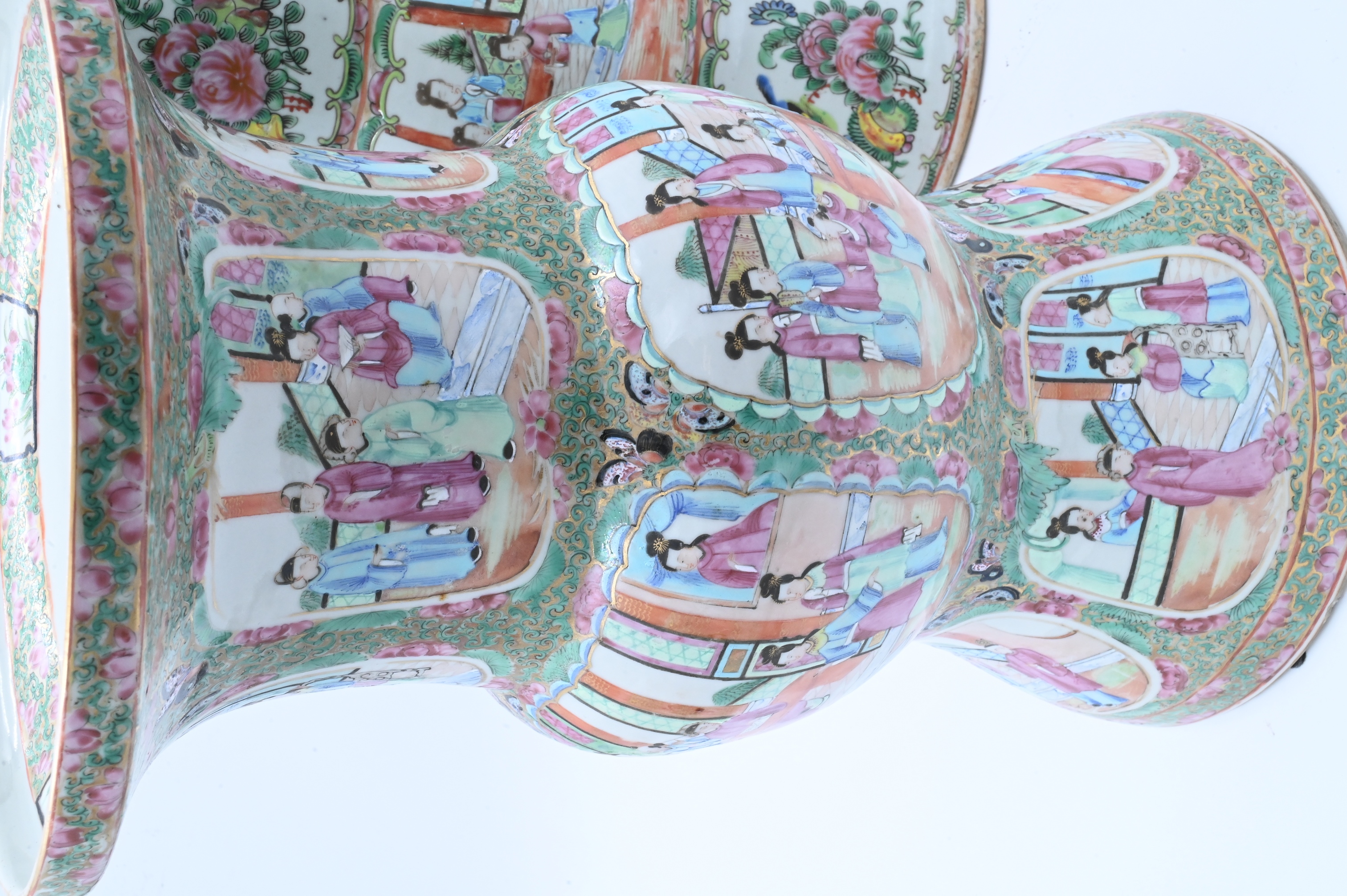 Lot 355: Pair of Rose Medallion Gu Vases