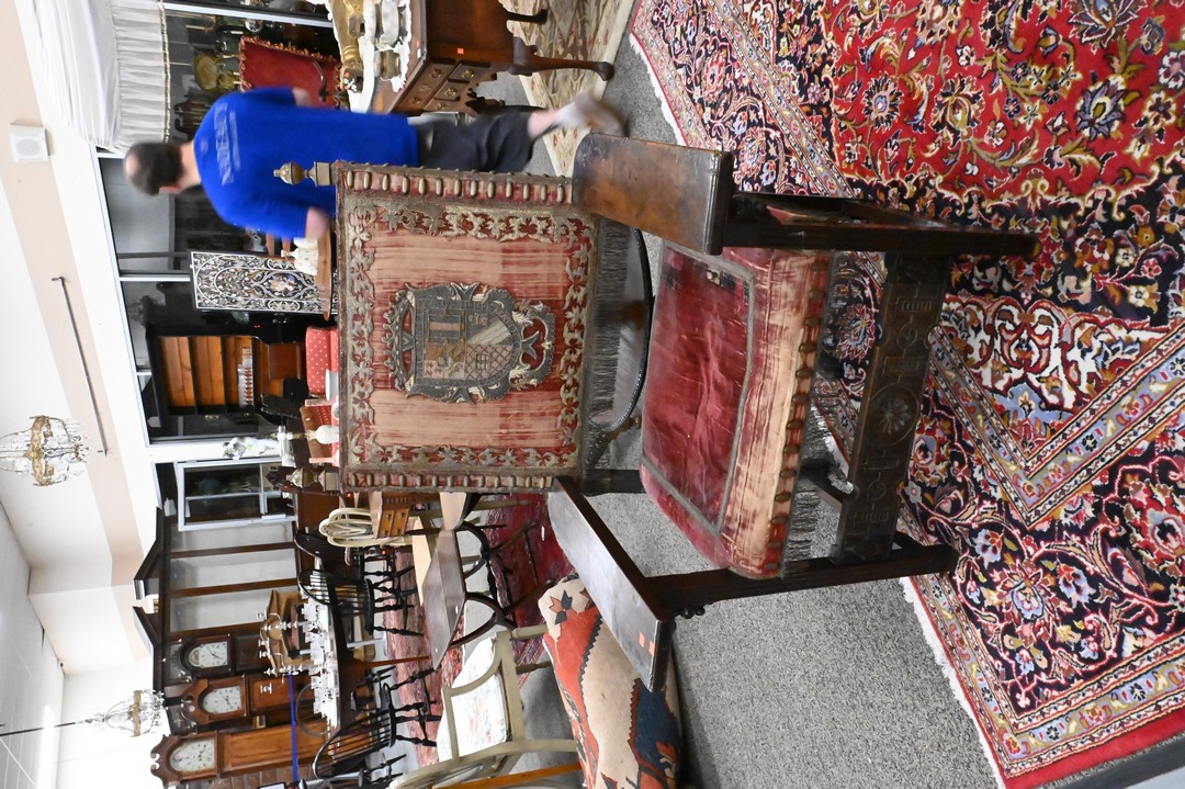 Lot 355: Pair of Walnut Continental Style Armchairs