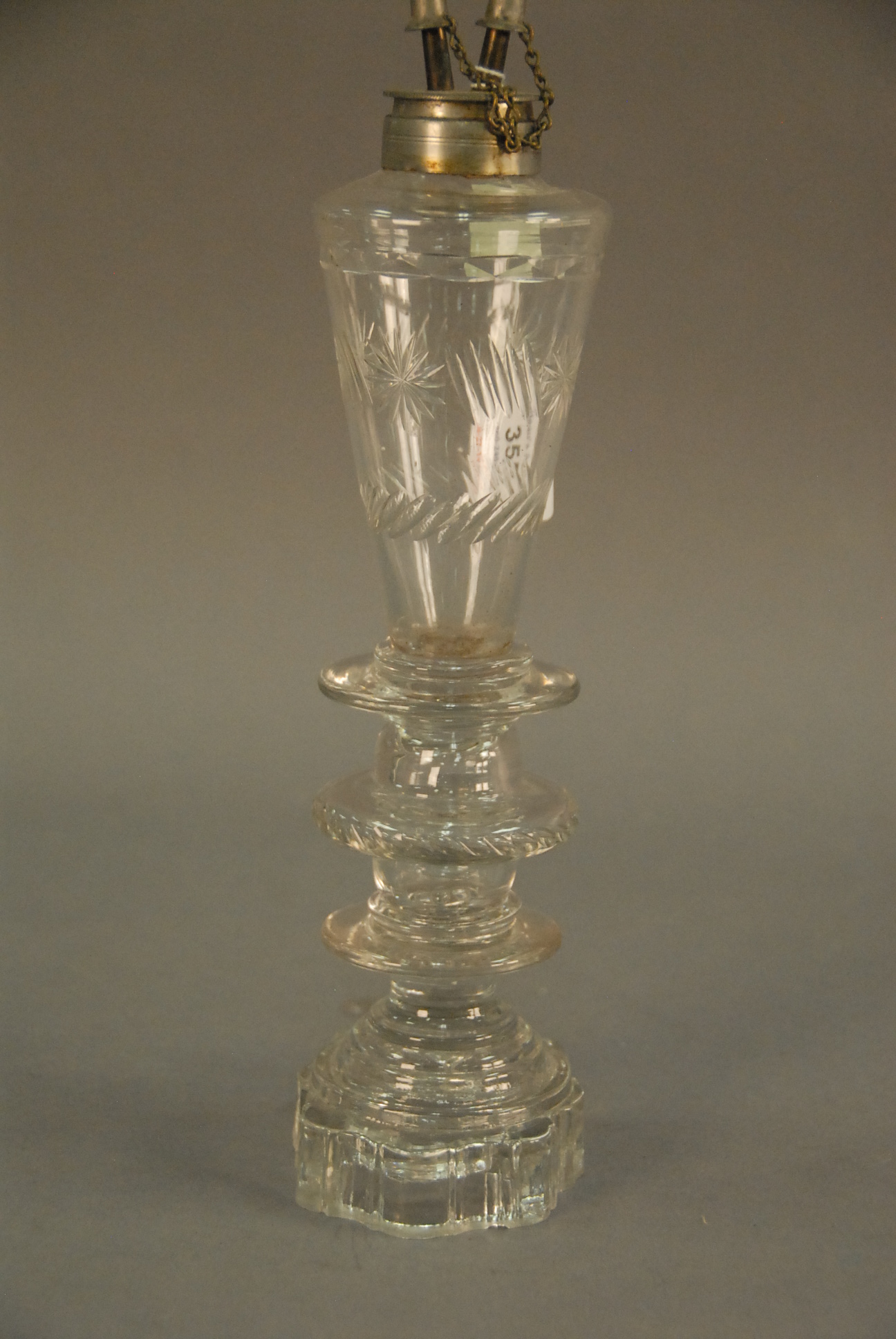 Sandwich glass oil lamp.ht. 12 1/2 in.