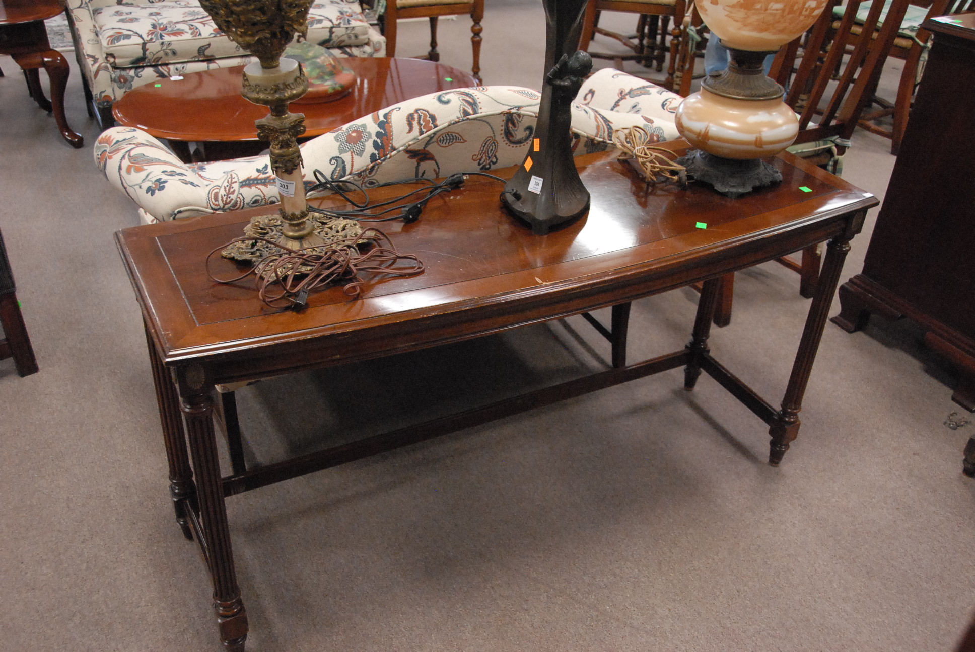 Lot 355: Three tables to include a sofa table, coffee table, and end table.