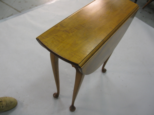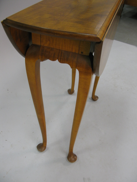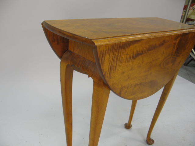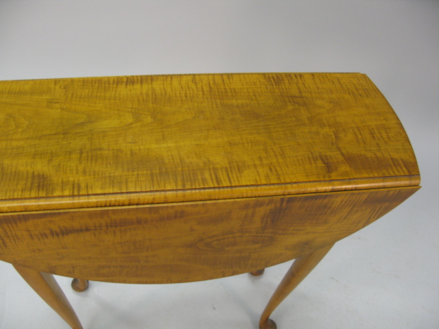 Custom maple and tiger maple Queen Anne drop leaf table, opens to 29in.