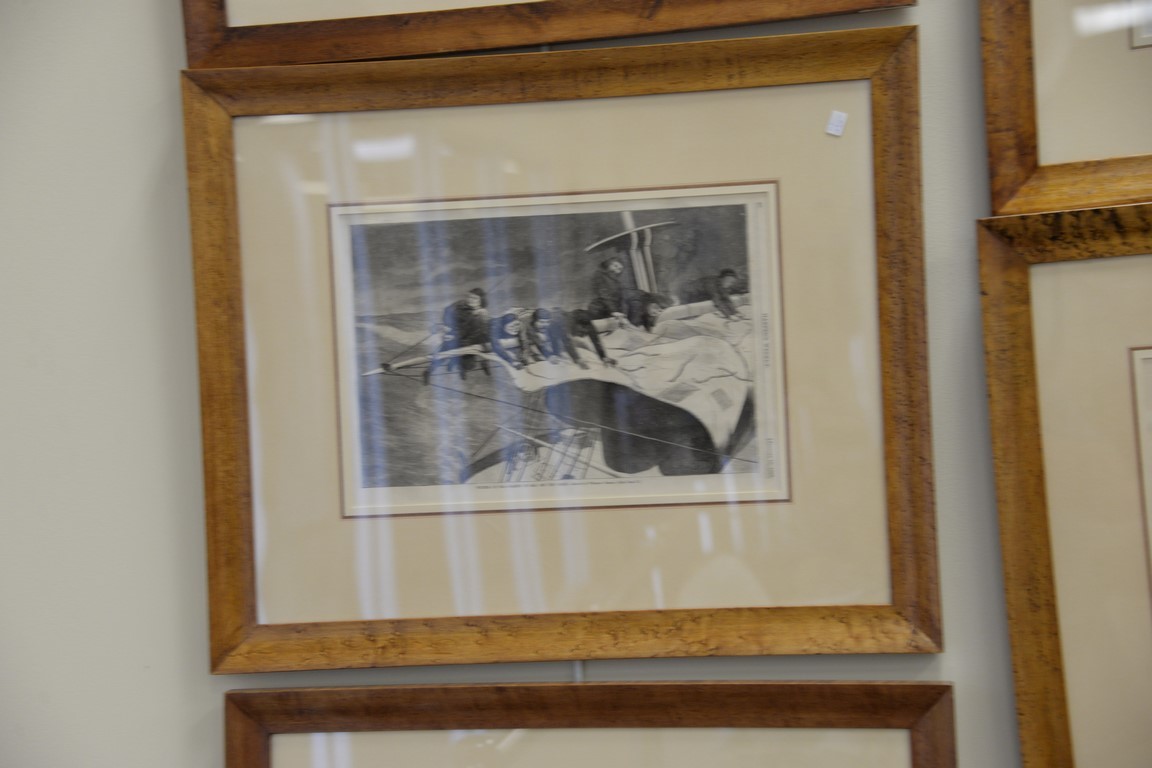 Eight piece lot to include a set of seven Harper’s Weekly hand colored lithographs along with one Frank Leslie’s Illustrated Newspaper hand colored lithograph. sight size: 10 x 15 and 15 x 10. Property from Credit Suisse’s Americana Collection