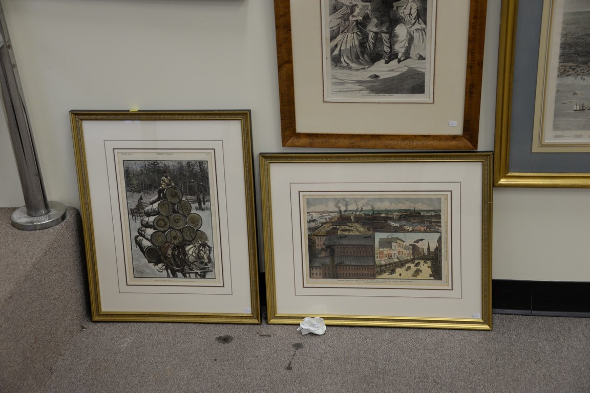 Lot 356: Eight piece lot to include a set of seven Harper’s Weekly hand colored lithographs along with one Frank Leslie’s Illustrated Newspap…
