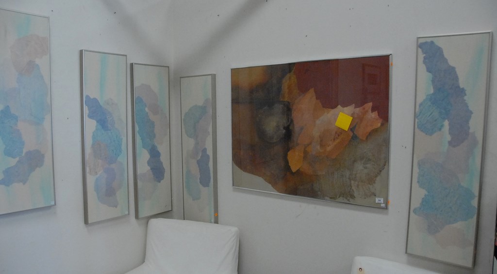 Group of six framed paintings, five are signed Carp, 41 x 12.