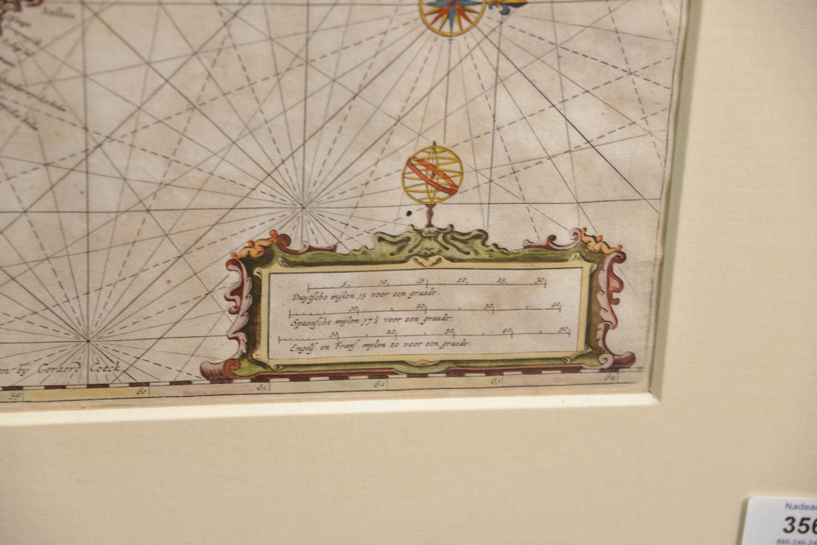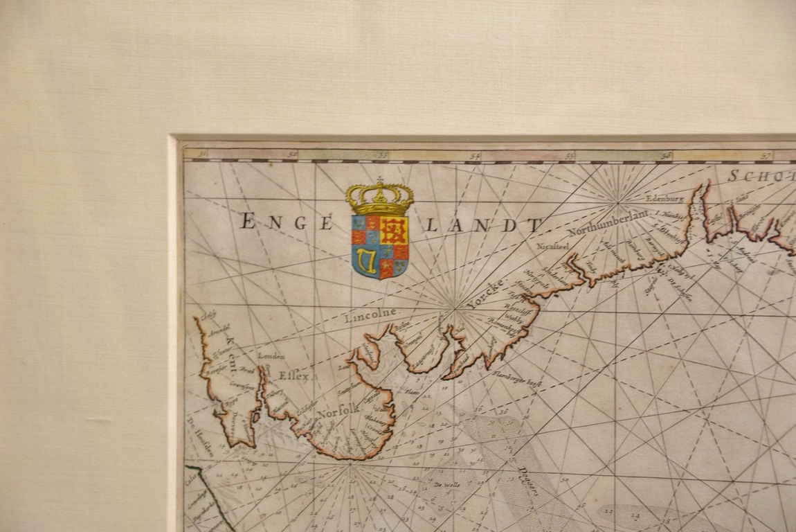 Lot 356: Hand colored engraving map Pascaart van de Noort Zee Verthoonende in Zich alle de Custen en Havens Daer Rontom Gelegen by Pie…