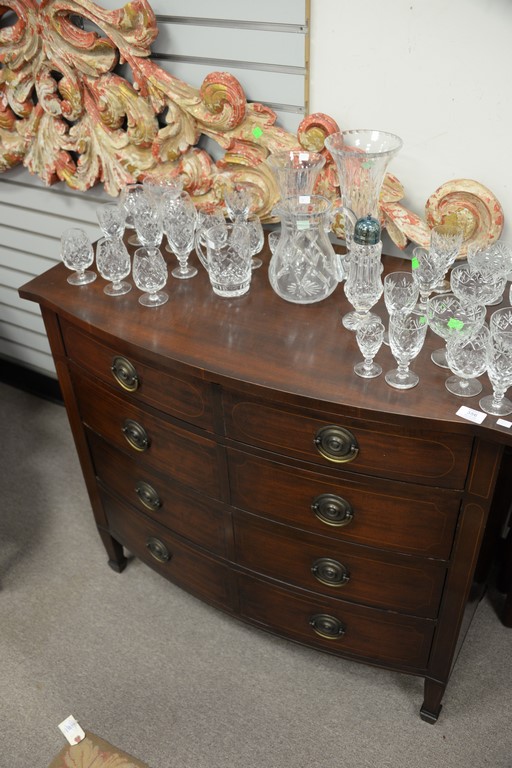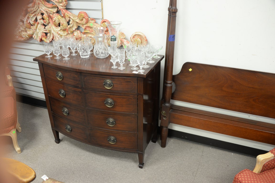 Two piece lot to include Kittinger Colonial Williamsburg bed and Kittinger mahogany chest marked Kittinger Buffalo. ht. 35in., wd. 37 1/2in., dp. 20in.