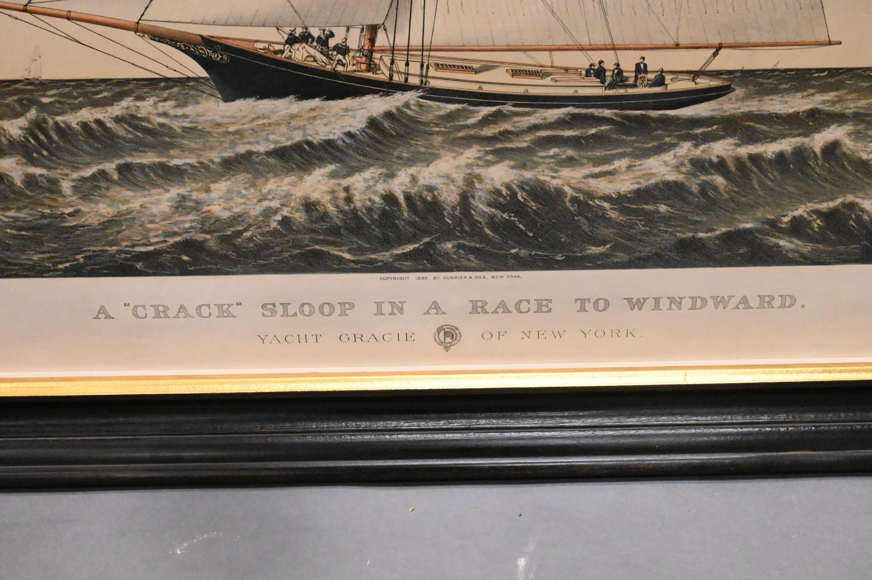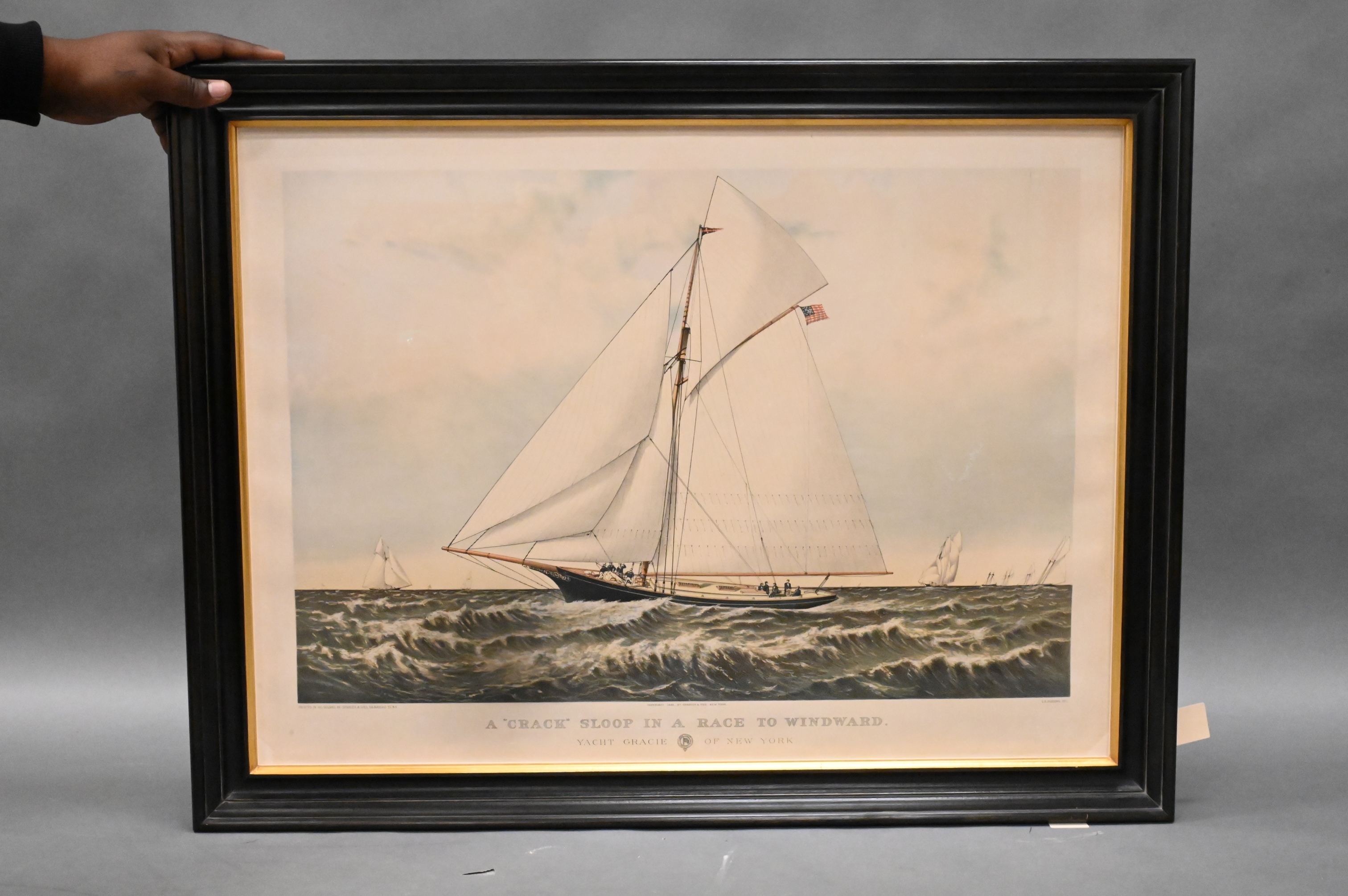Lot 357: Currier and Ives “Yacht Gracie” hand colored Lithograph, 1882