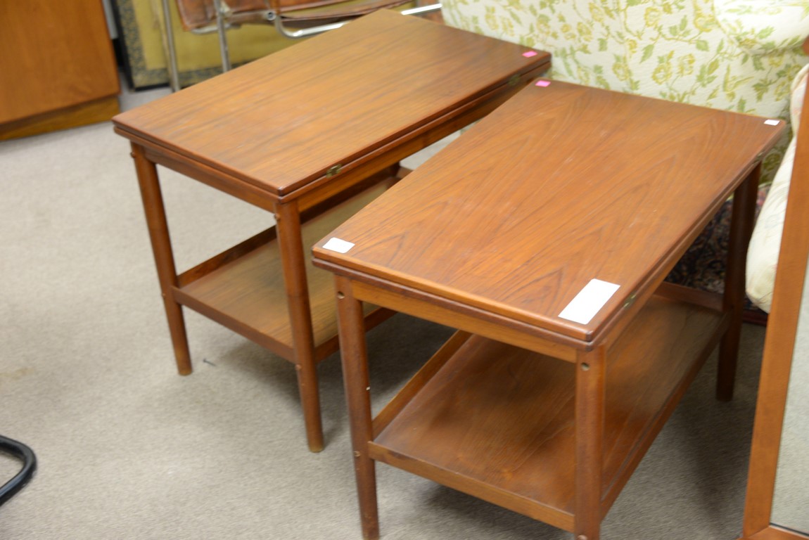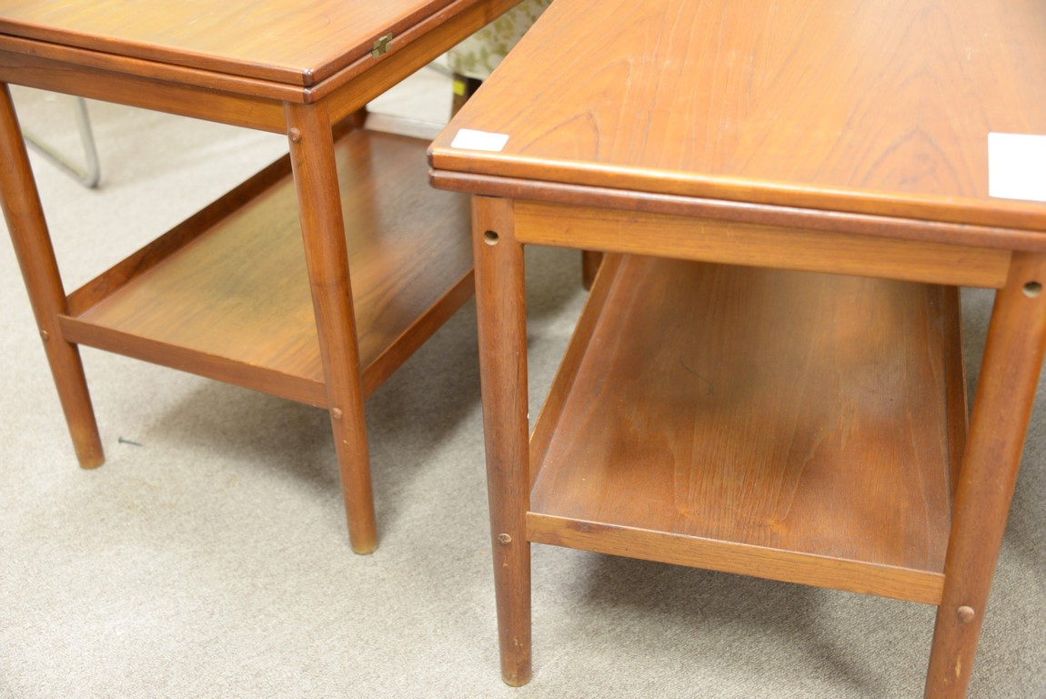 Lot 357: Danish Modern teak end tables, swivel tops which open, stamped PJ Denmark. ht. 22 in. top: 18 x 27 1/2