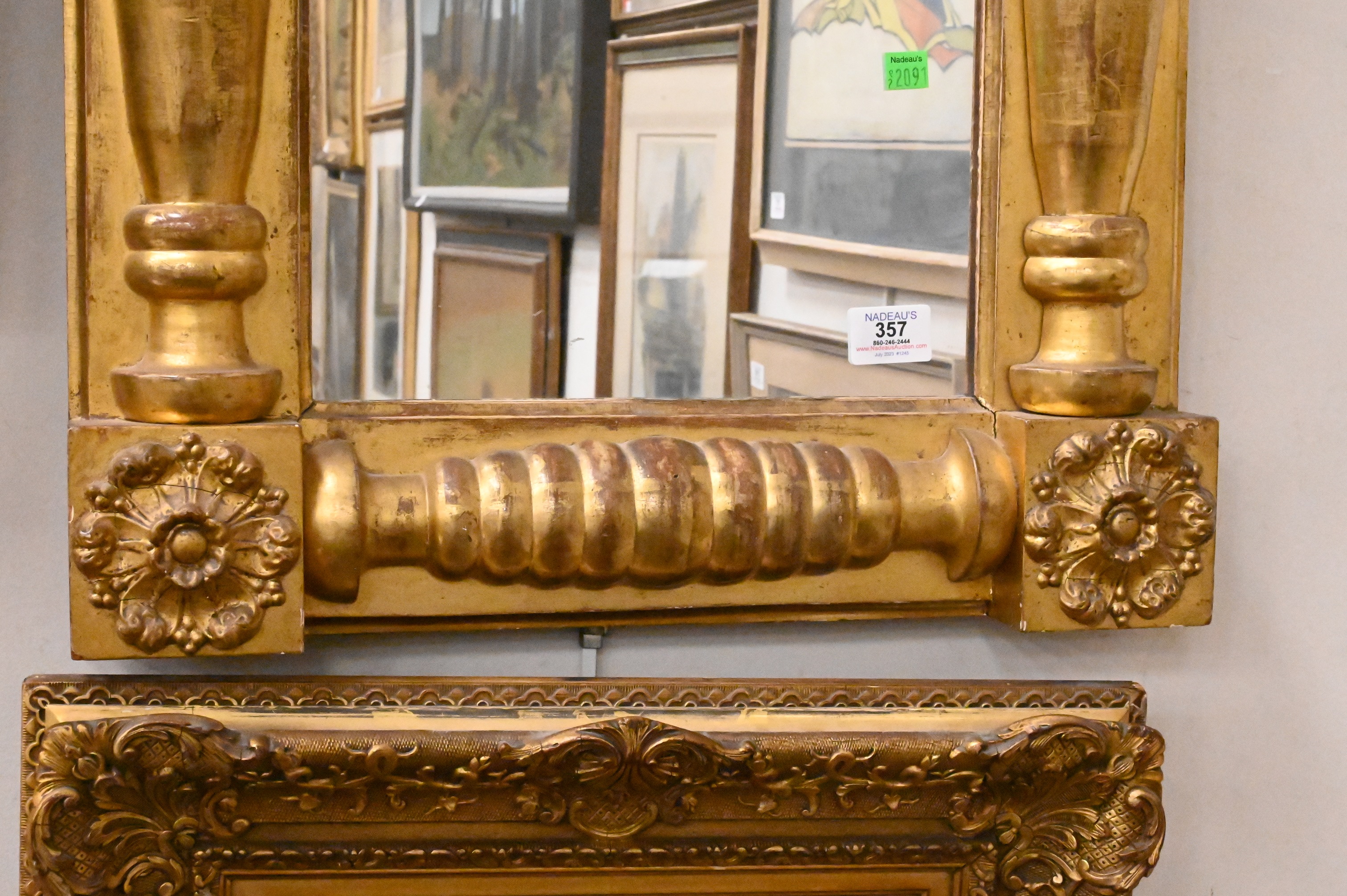 Federal Gilt Two Part Mirror, c. 1840, height 37 inches, width 20 inches.