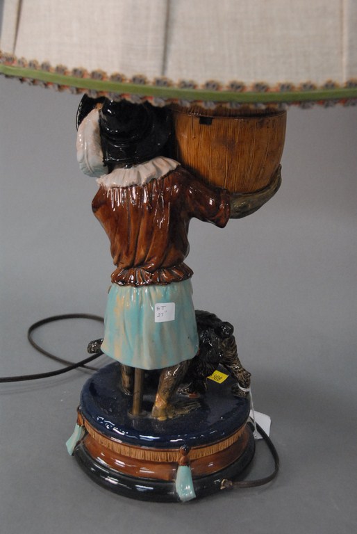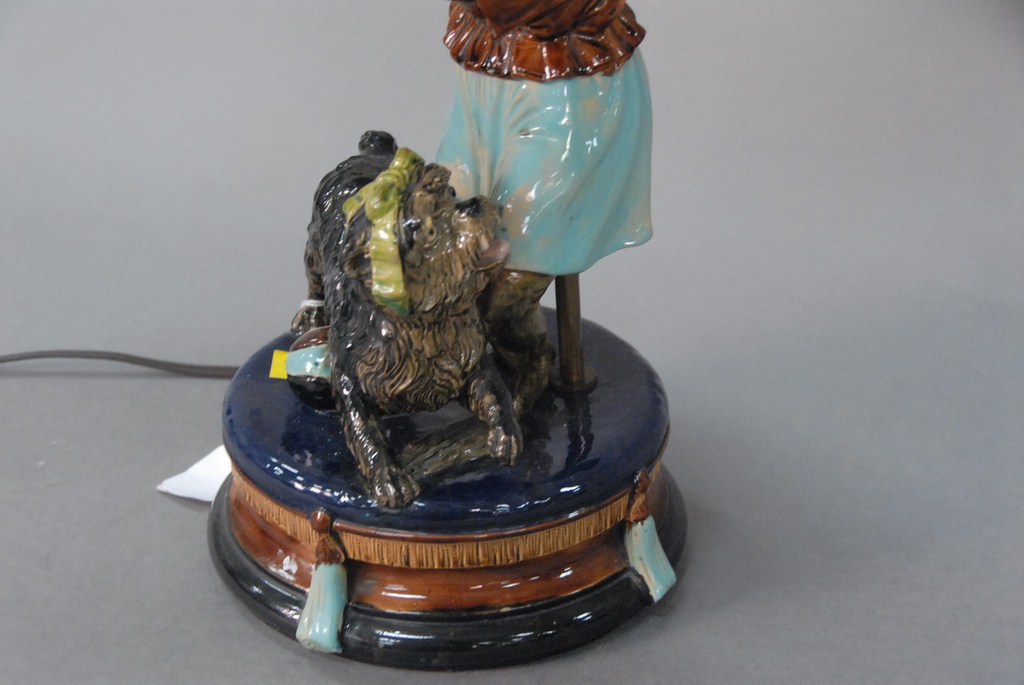 Lot 357: Majolica monkey figure oil lamp with scotty dog, electrified. Provenance: property from a home in Rockville Center, New York which w…