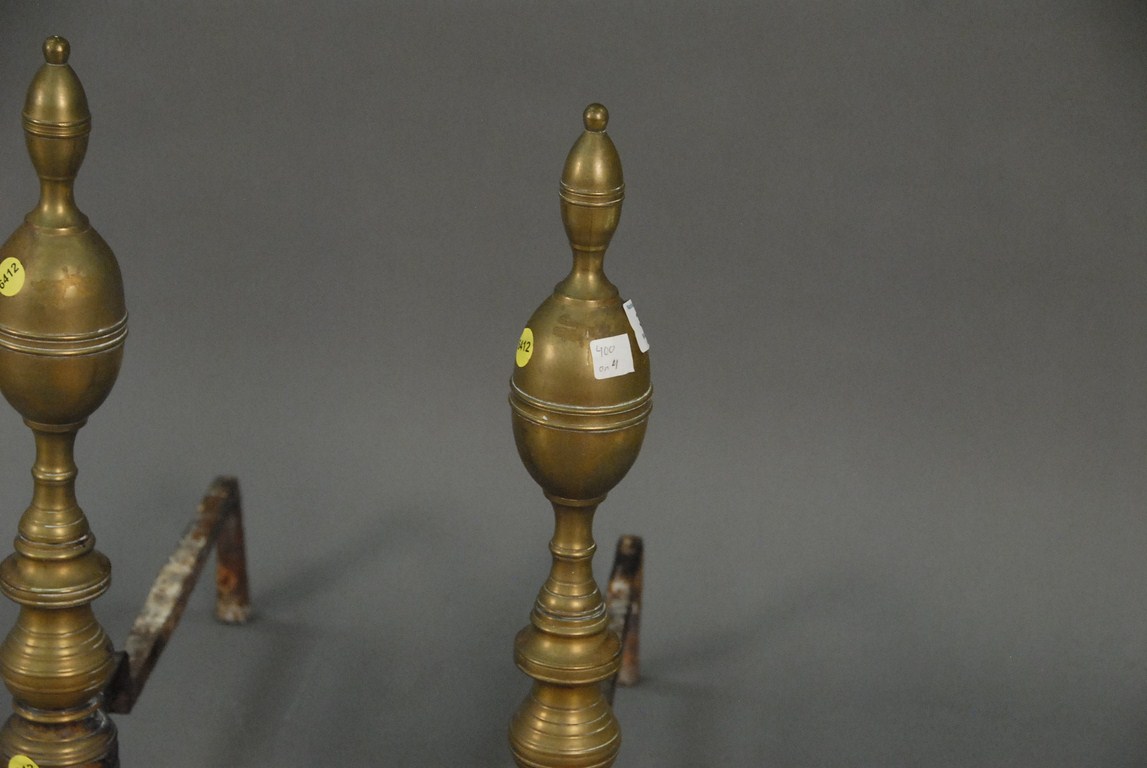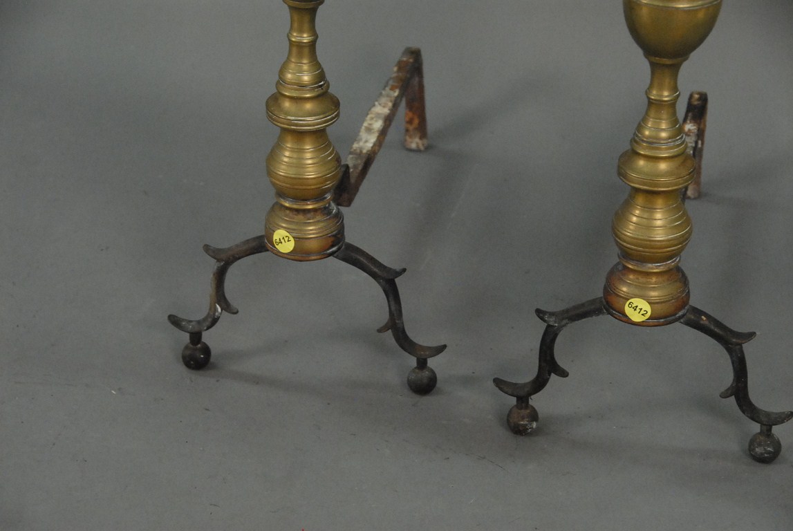 Lot 357: Pair of Federal double lemon top andirons. Provenance: Estate of Charles Archibald Goodwin and Ruth Cheney Goodwin.