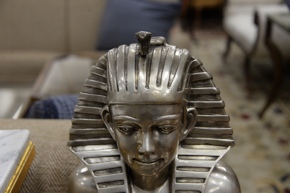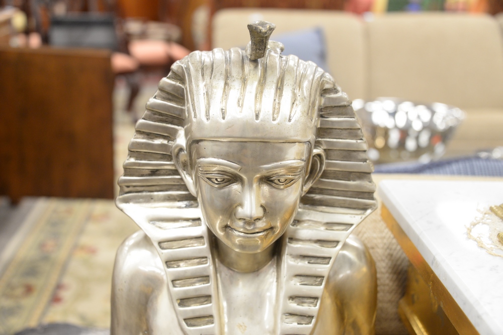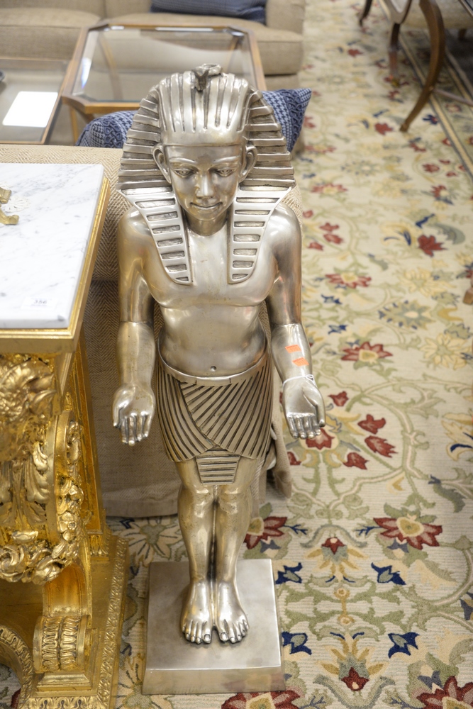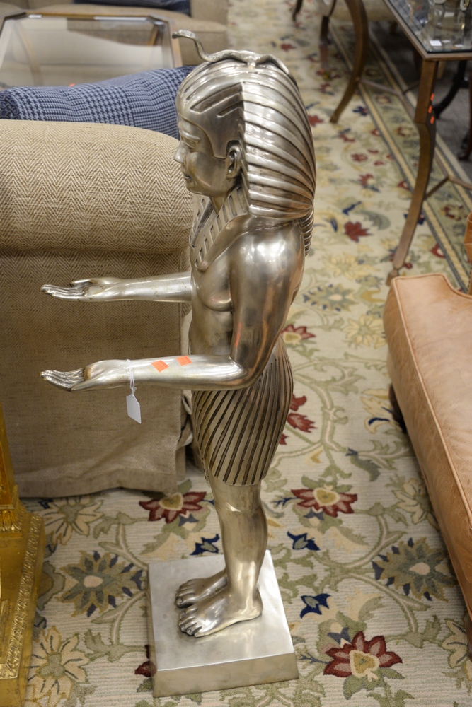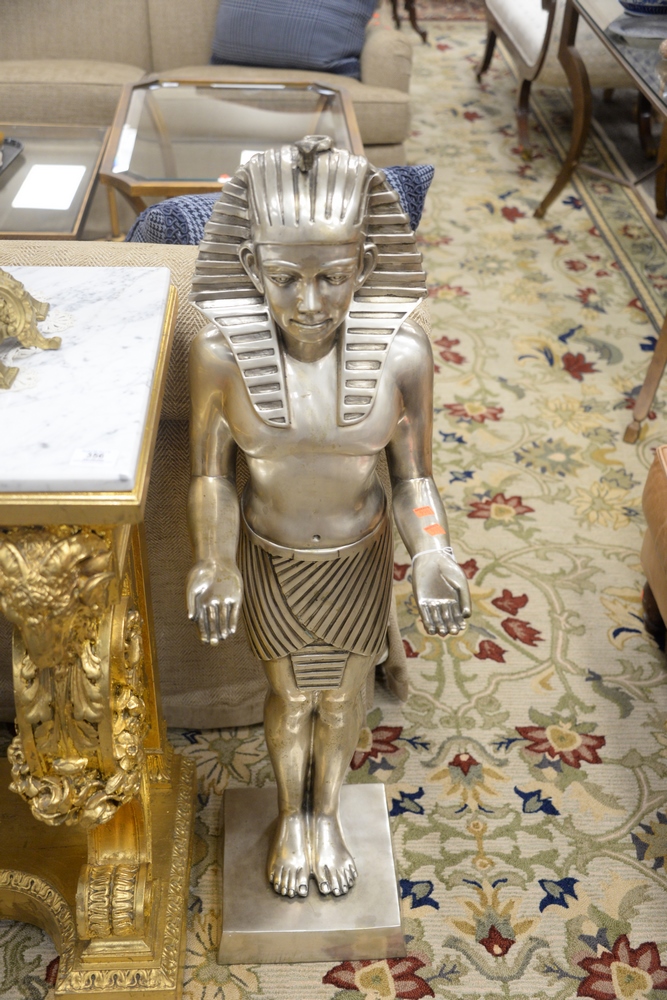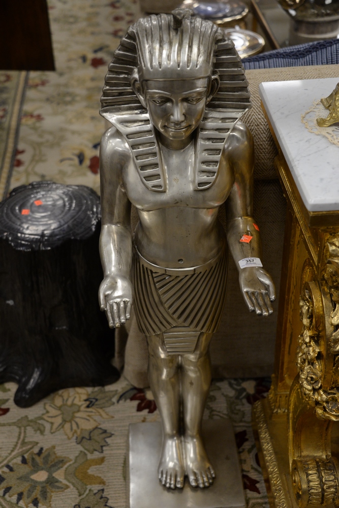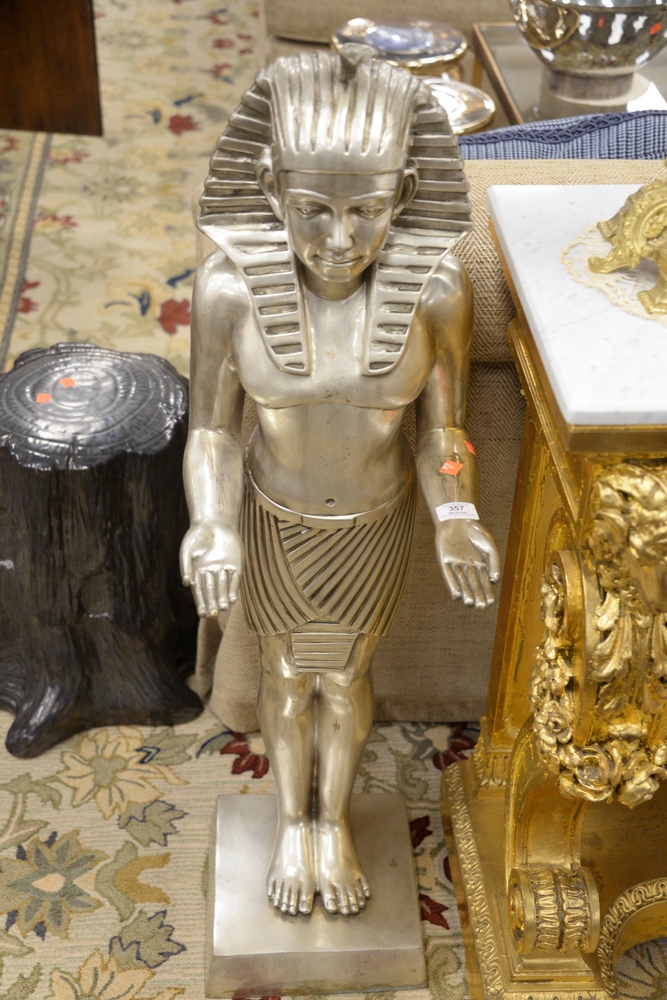 Lot 357: Pair of Silvered Brass Egyptian Pharaoh Figures, height 45 inches.