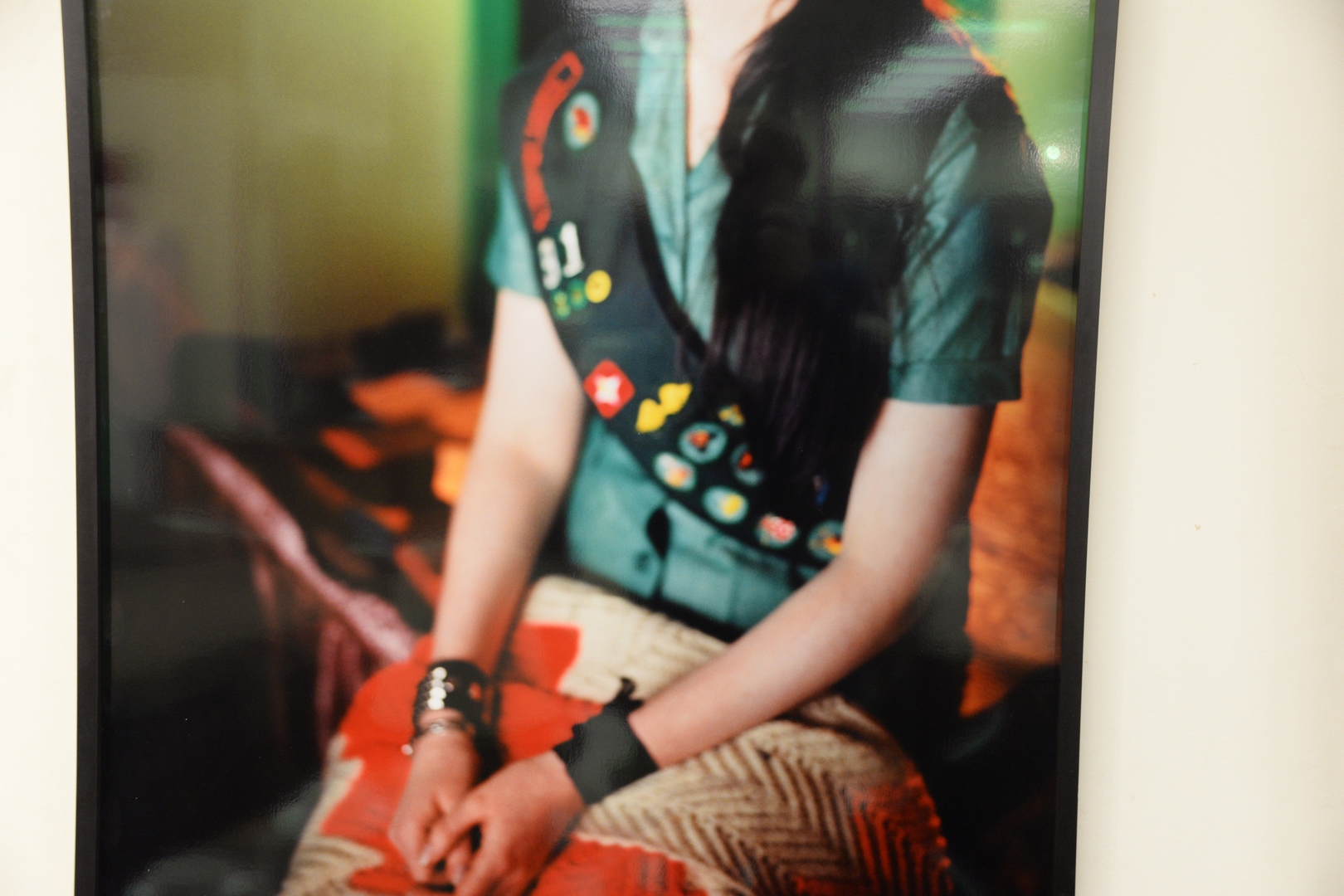 Sue de Beer (American, b. 1973), Still from Disappear Here (Meghan Lunch – Red Blanket), oversized dye coupler, retails for $5,500, 40″ x 60″.