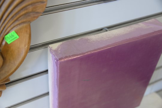 Lot 357A: David Simpson 1928 oil on canvas Side Effect signed on back and side of canvas David Simpson 2002. 12 x 12
