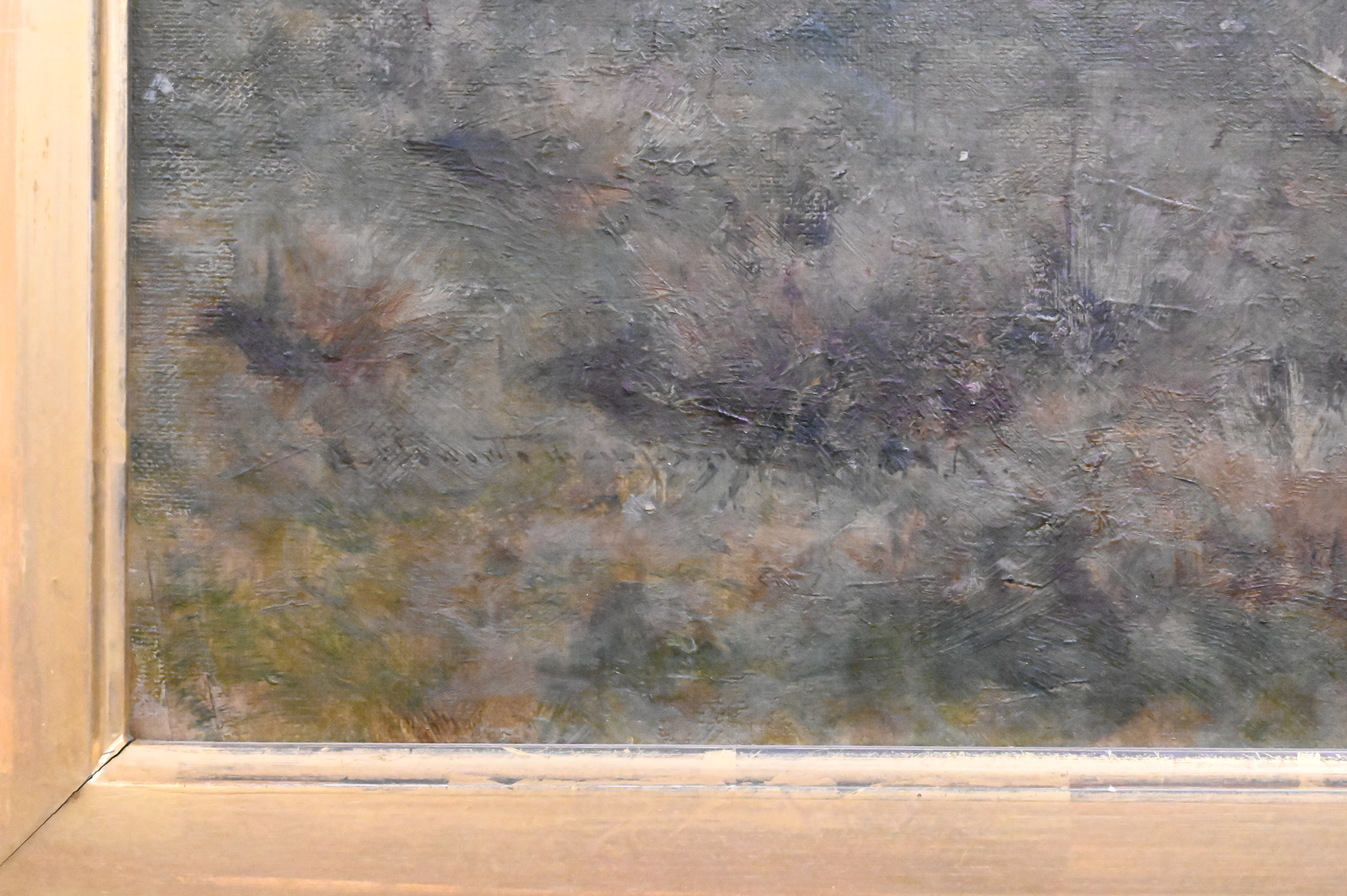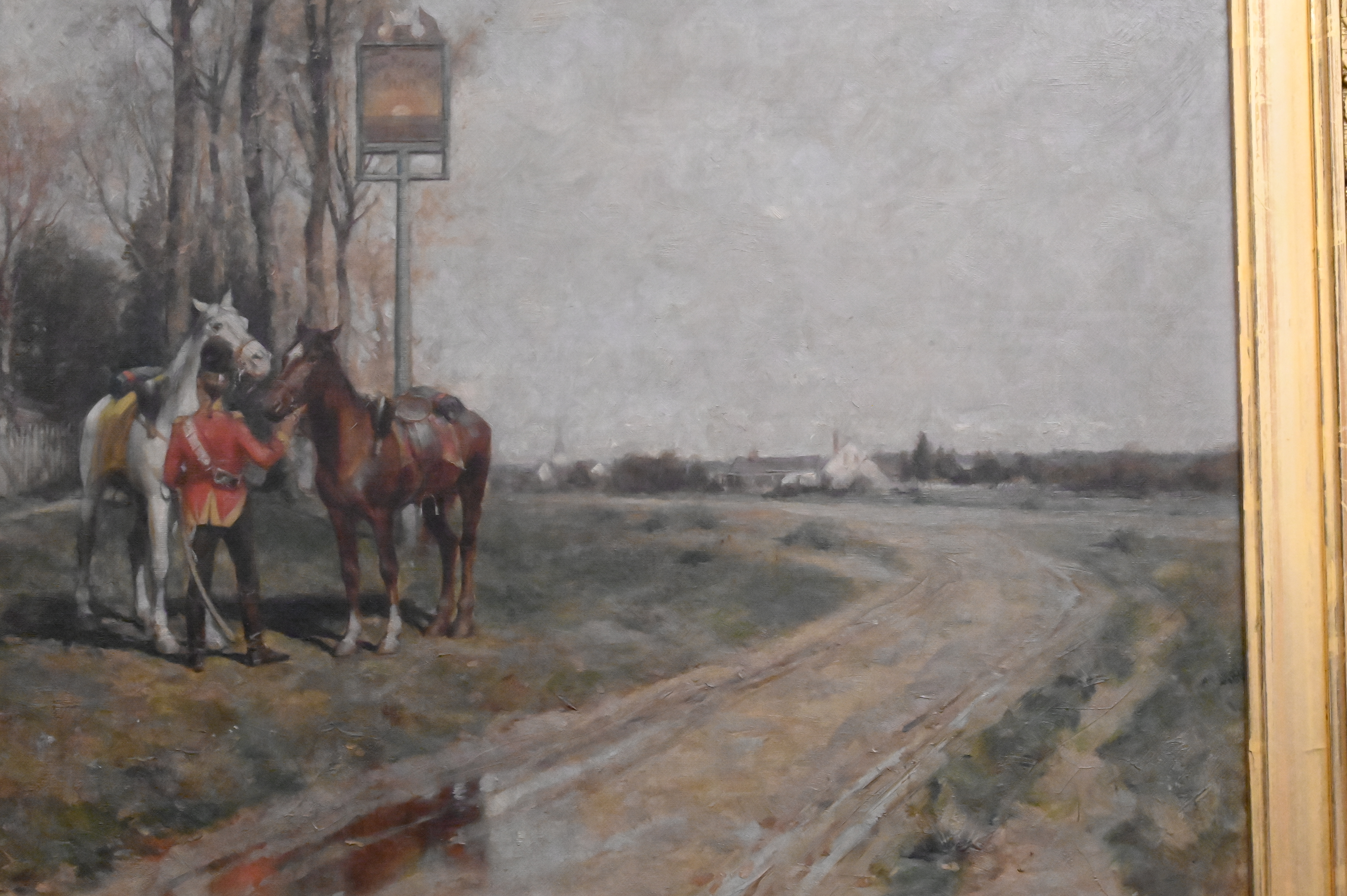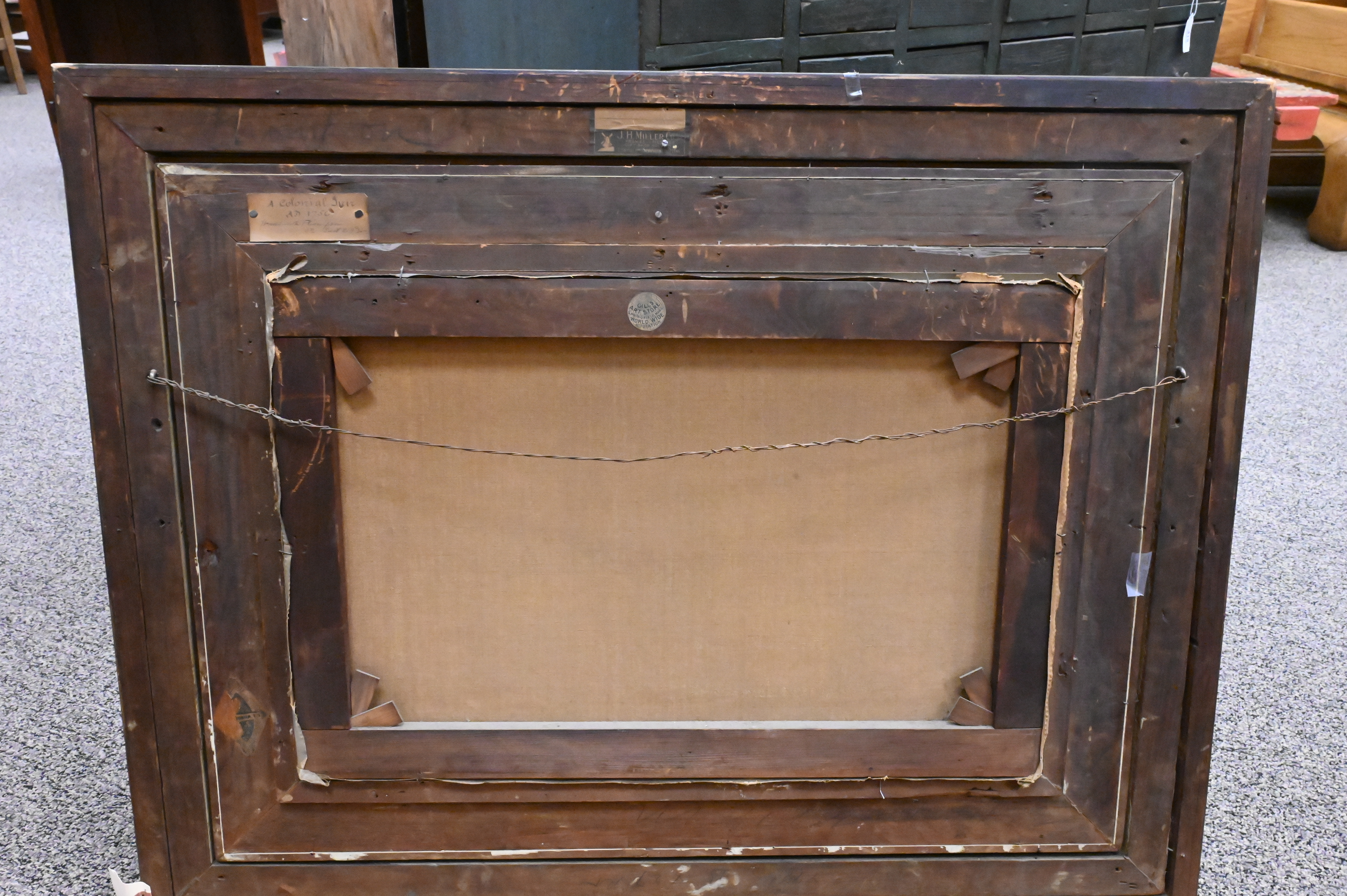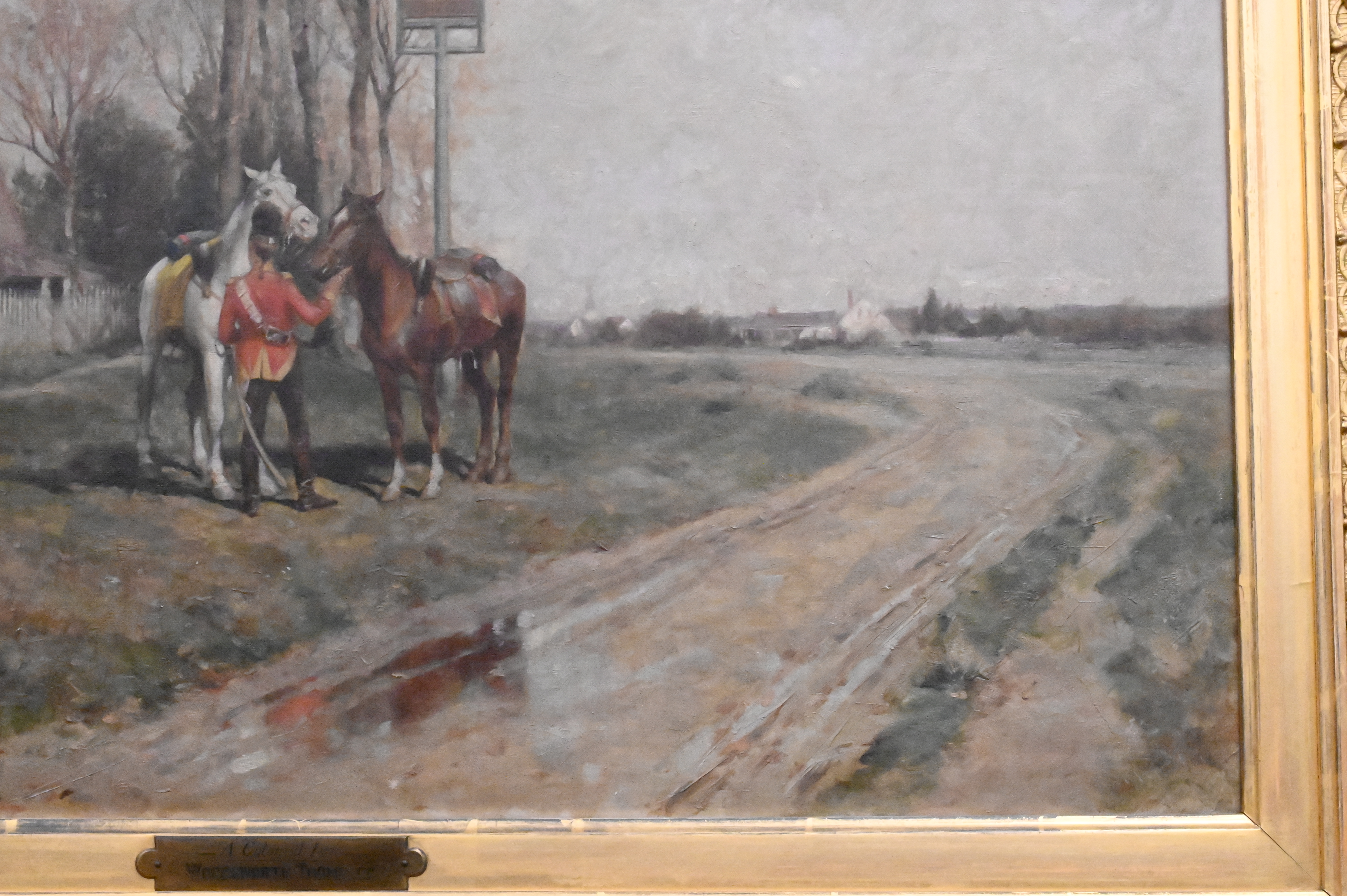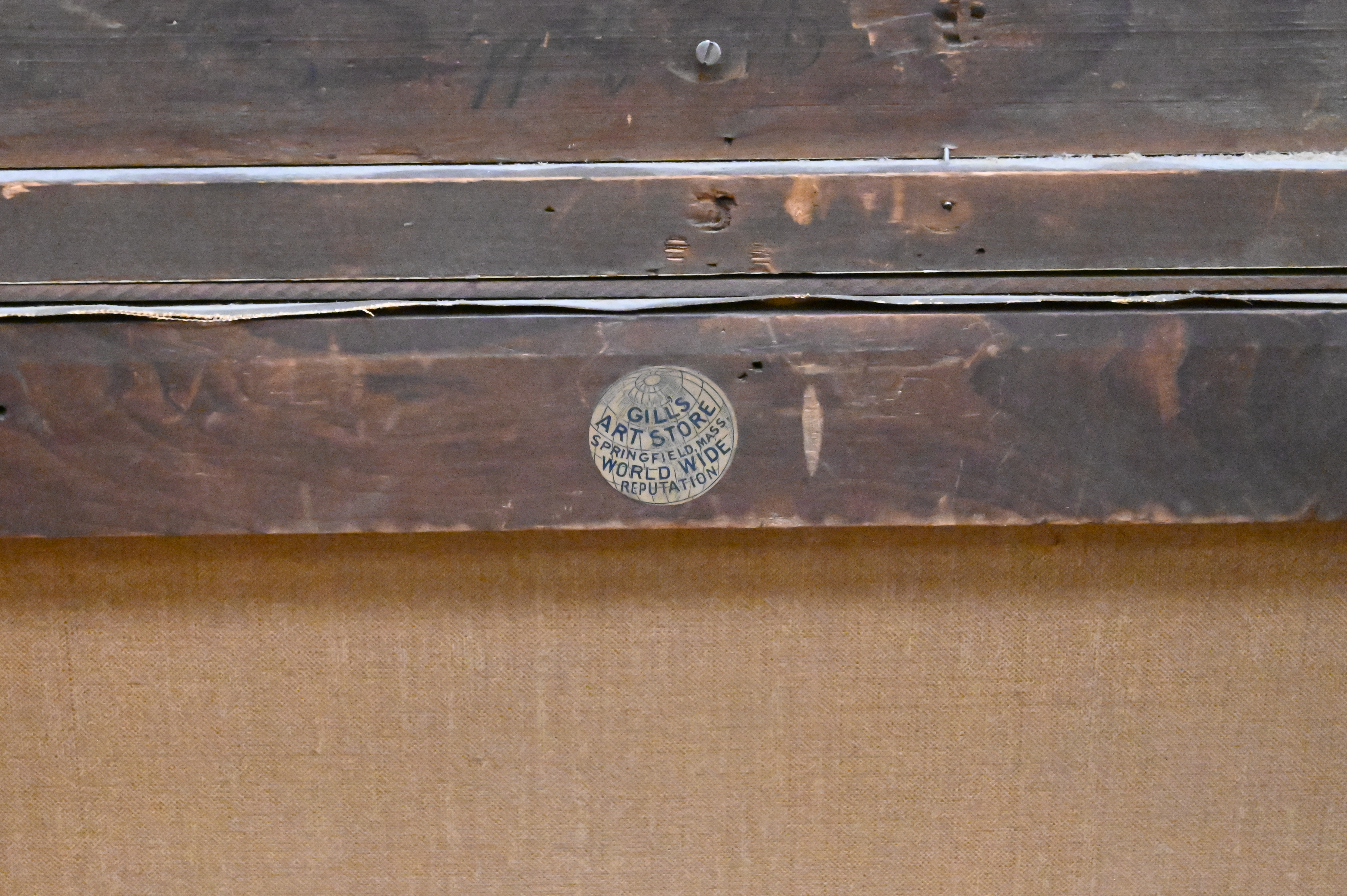 In ornate giltwood frame with title plaque bottom center along with handwritten letter by Gill’s Art Rooms American Paintings Proprietor dated 1919
