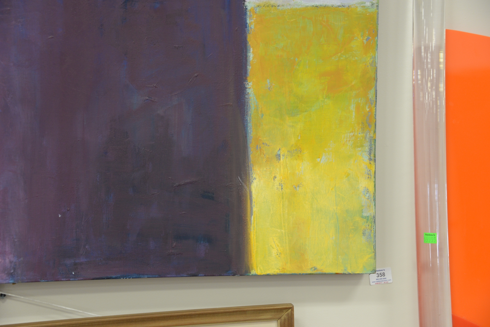 Contemporary oil on canvas Abstraction Barn signed bottom right Andrew 06. 36 X 38