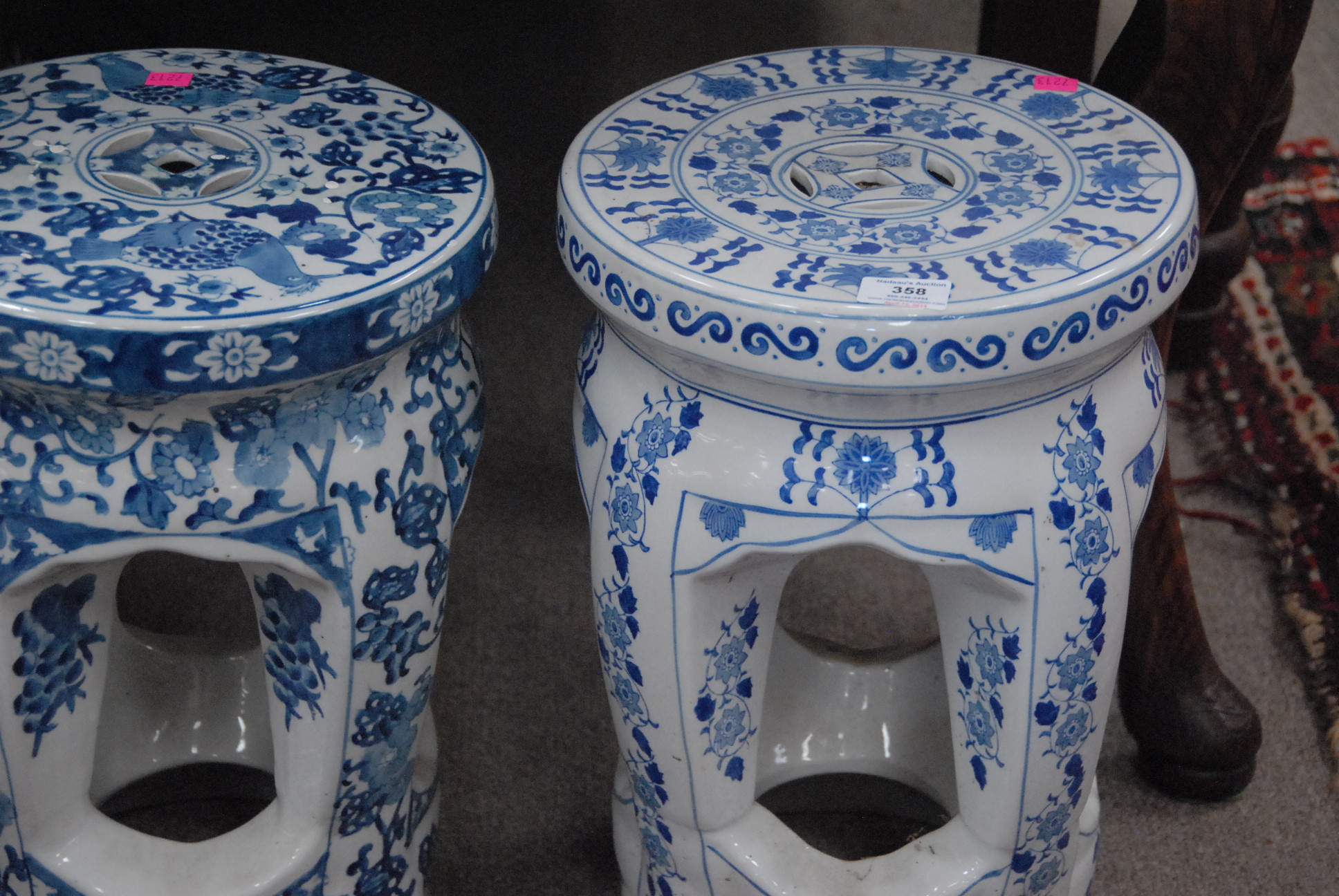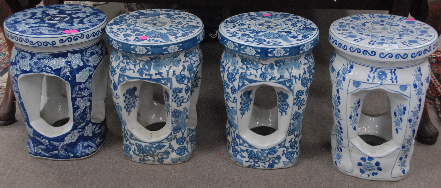 Lot 358: Four porcelain garden seats.