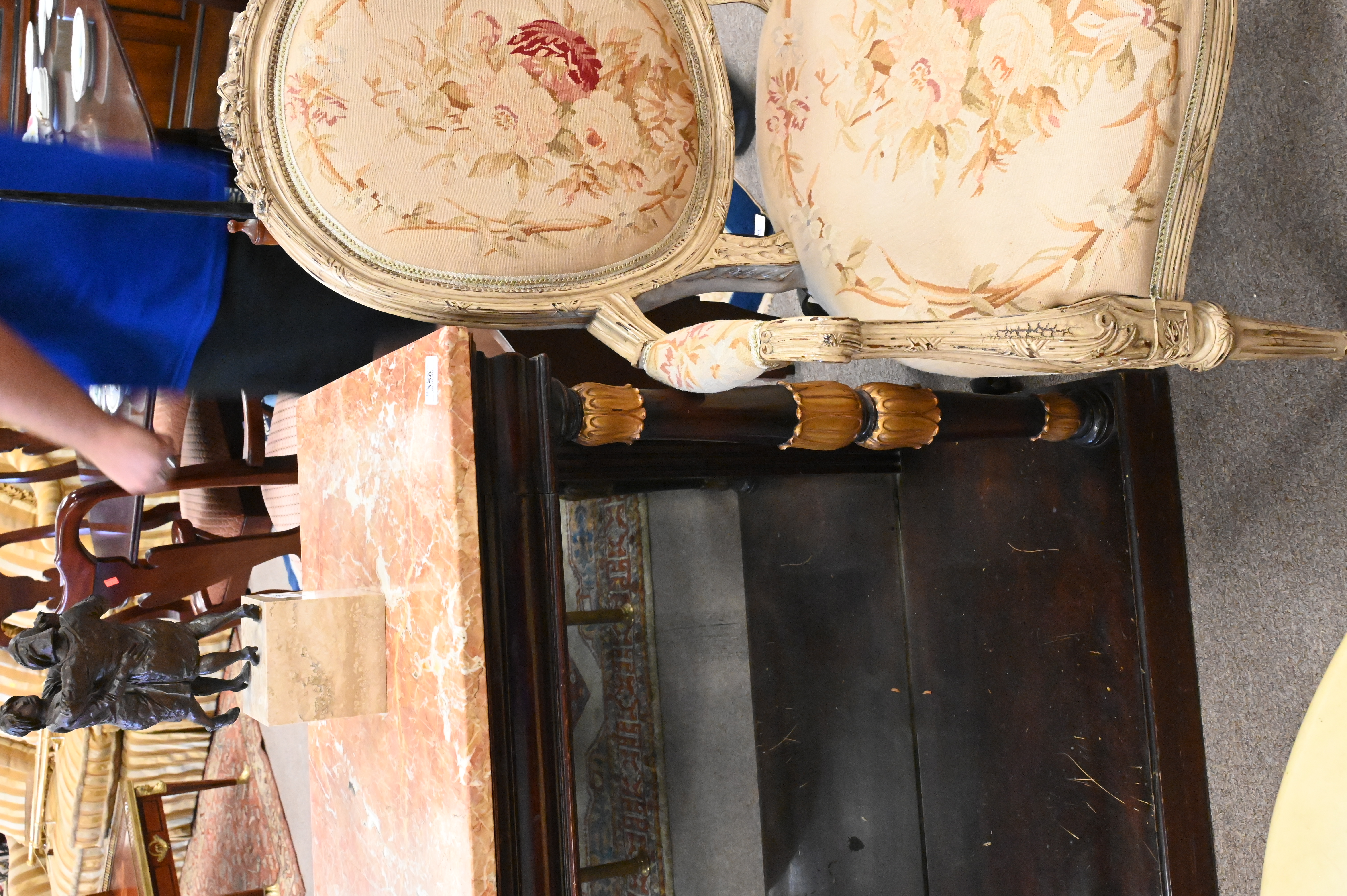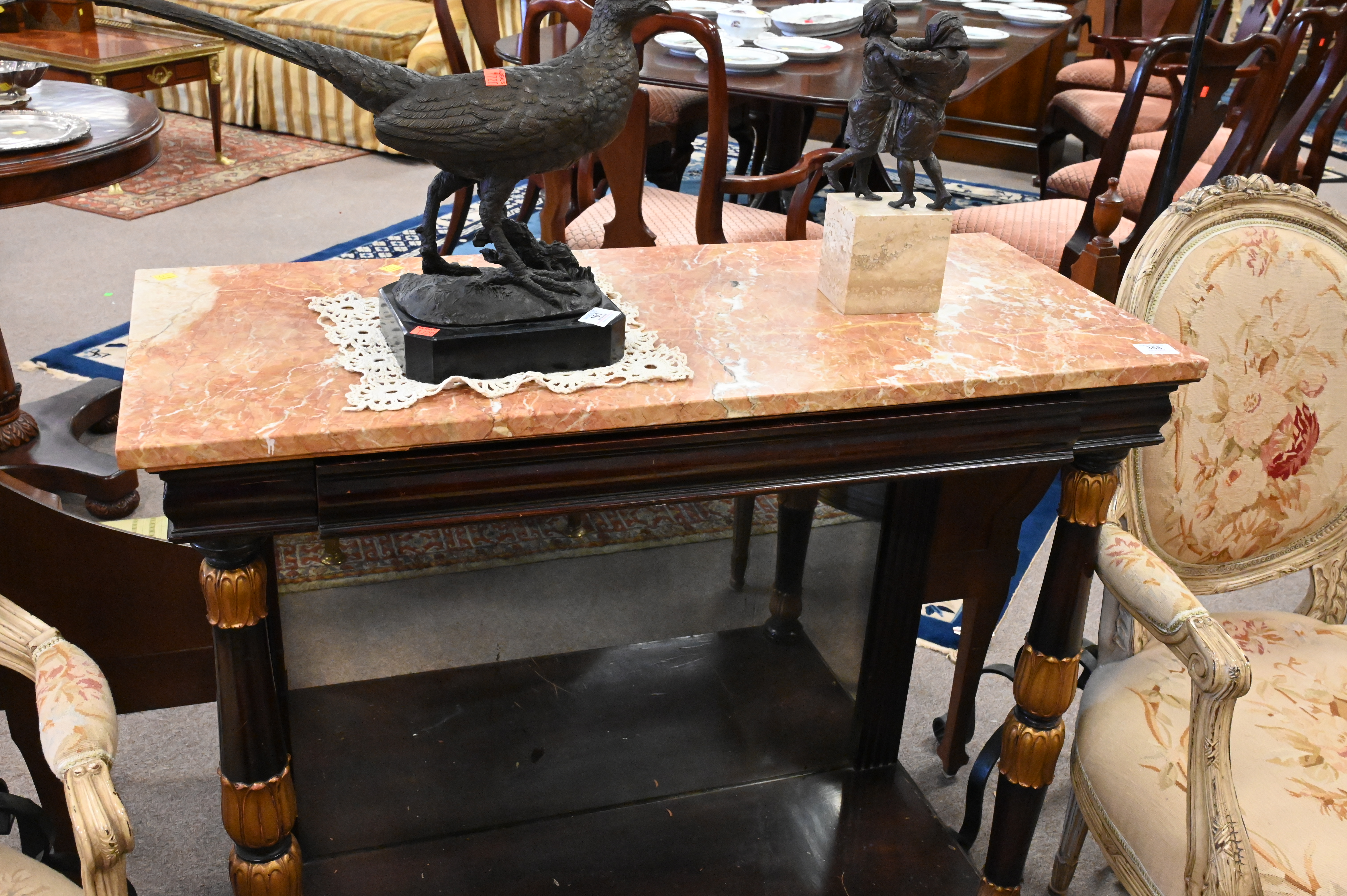 Mahogany Console Table, marble top, having one drawer, height 34 inches, top 16 1/8″x 38 1/2″