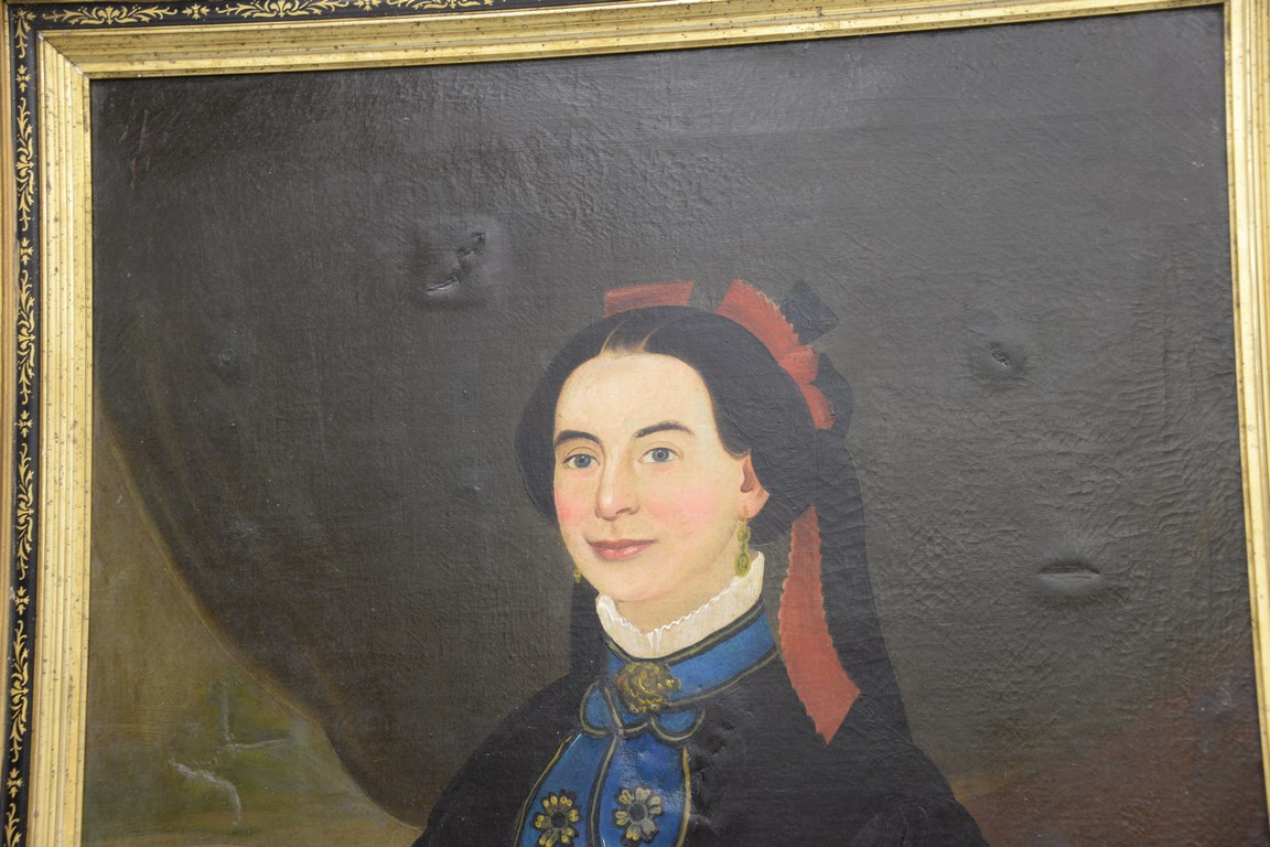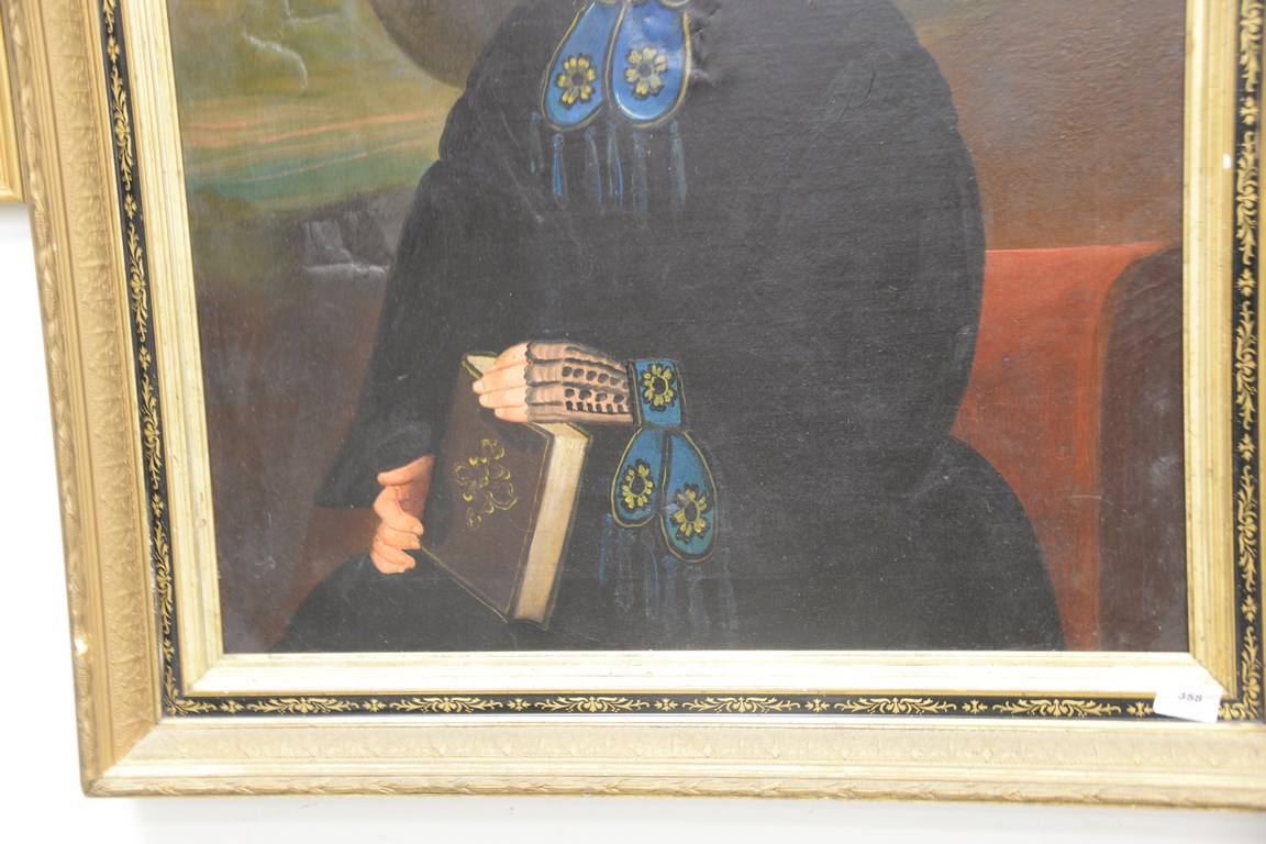 Oil on canvas 19th century portrait of a woman holding a book small repairs. 34 x 27