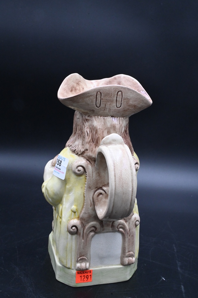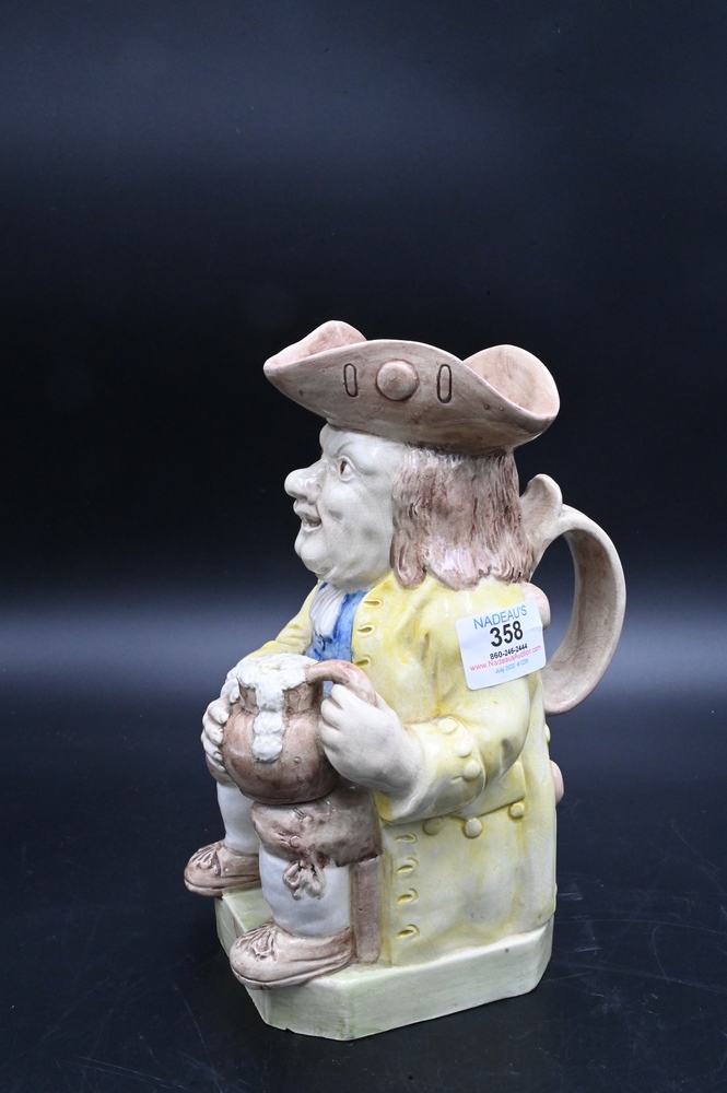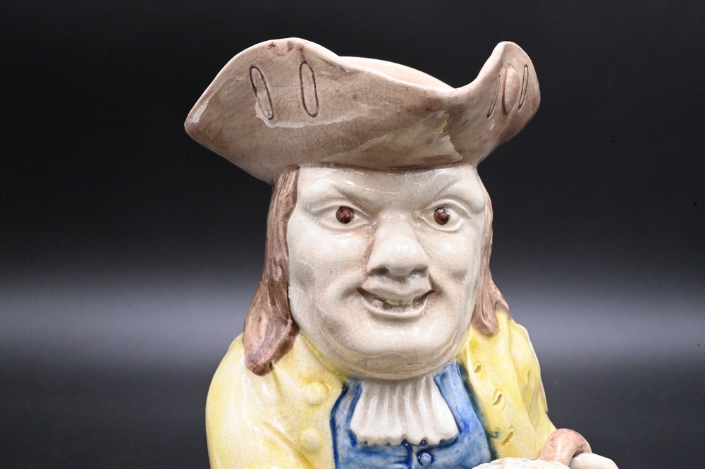 Pearlware Toby Jug, to include Ralph Wood, depicting a seated figure holding a beer, height 9 3/4 inches.