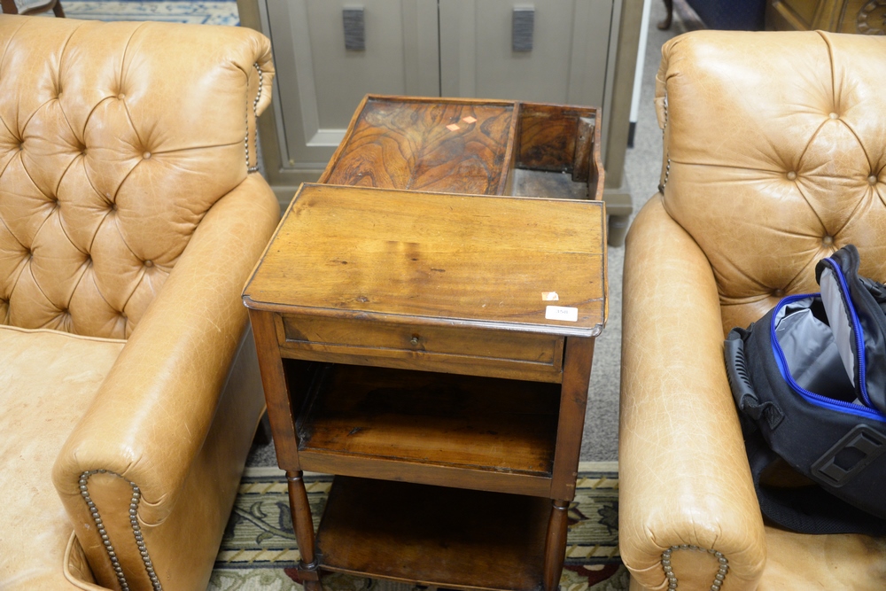 Lot 358: Two Piece Lot, to include a mahogany stand having one drawer along with a French plant stand, mahogany height 28 1/2 inches, French …
