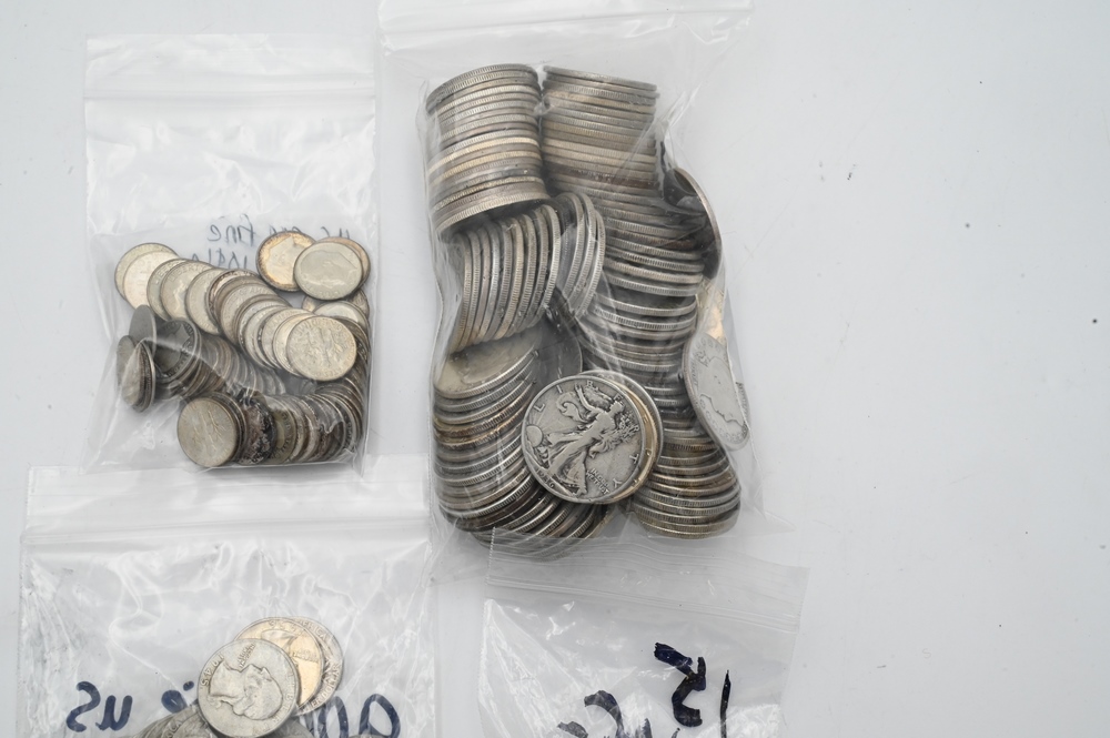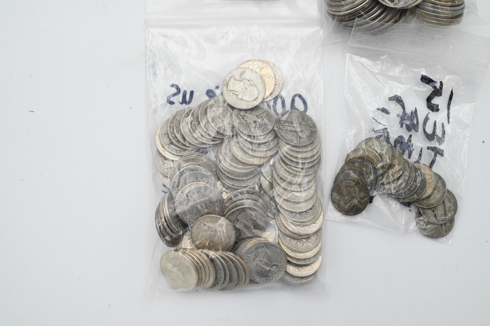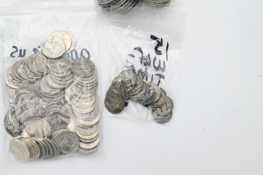 Lot 359: 15 Silver Wartime Jefferson Set, at fifty cents each, .90% silver US coins, ten cent $6.30/face value; twenty-five cent $26/face val…