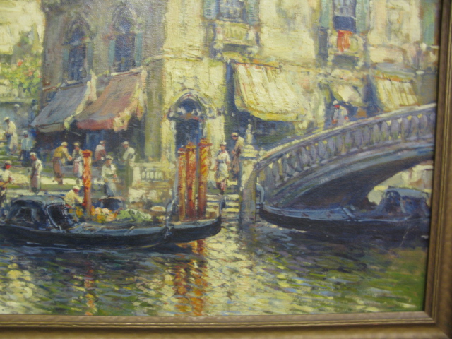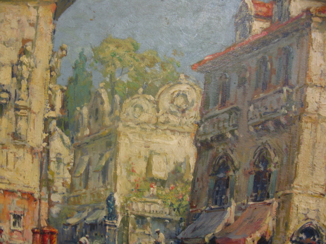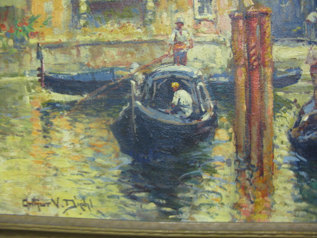 Arthur Vidal Diehl 1870-1929, MEDITERRANEAN CANAL ON TOWN’S EDGE, oil on board, signed lower left Arthur V. Diehl.