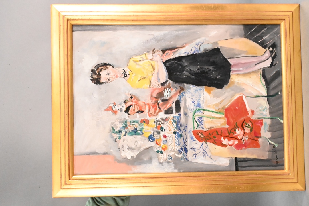 Emilio Grau-Sala (1911 – 1975) girl with jester doll oil on canvas, restretched signed lower left Grau-Sala 25 5/8 x 18 inches Condition: In good condition, Good under black light