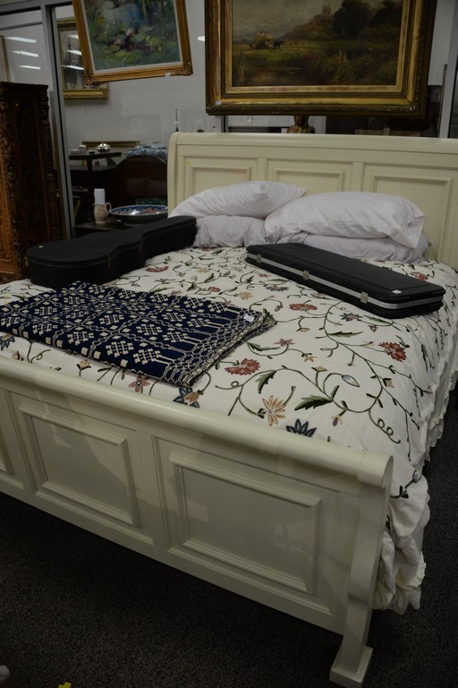 King size sleigh bed with Sealy box spring and mattress. ht. 58in.