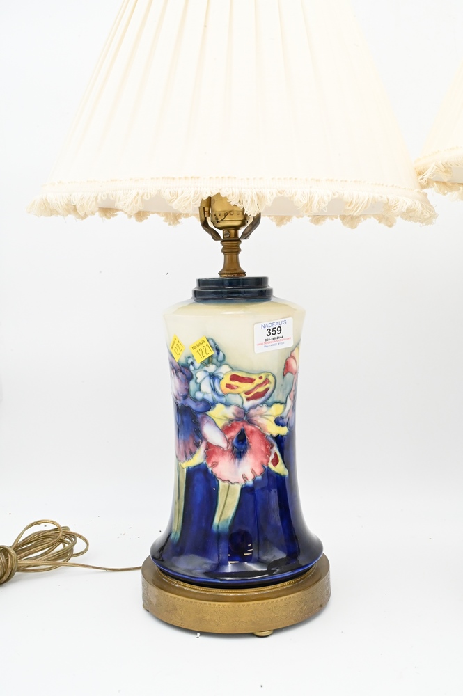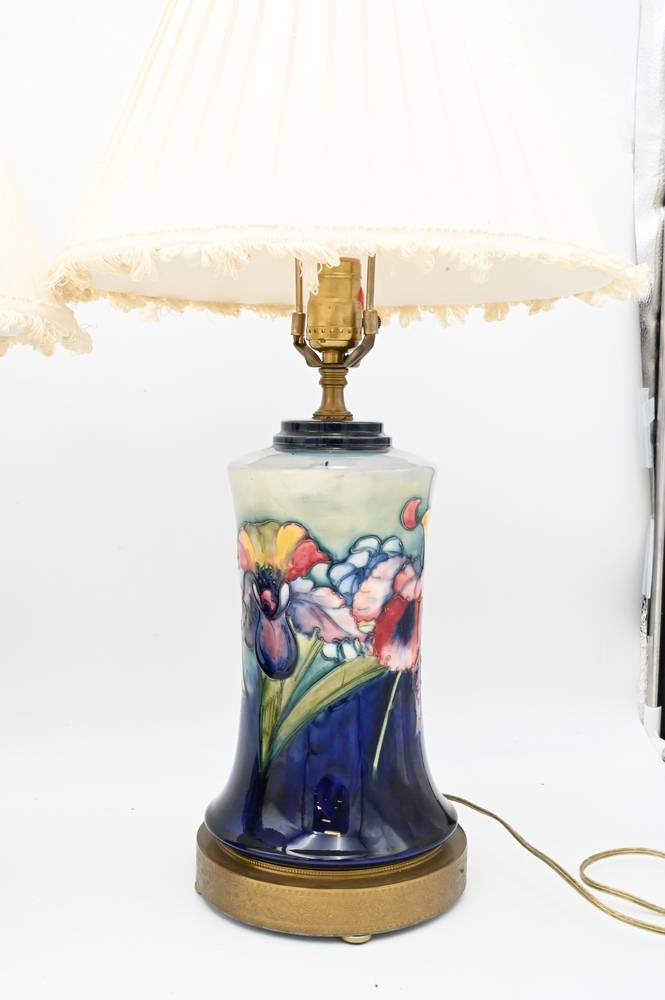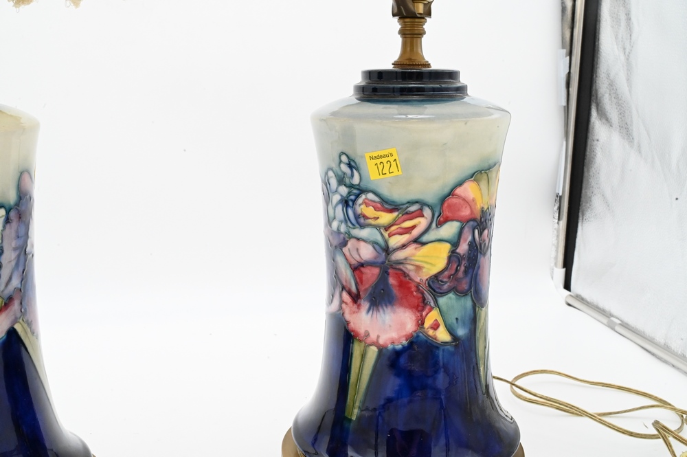 Pair of Moorcroft Pottery Lamps, height 26 inches.