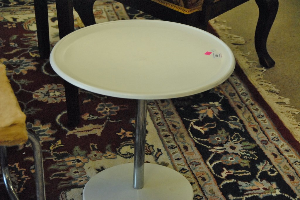 Small white stand by Allen Turuill for Begasse Products Co.: dia. 18in.
