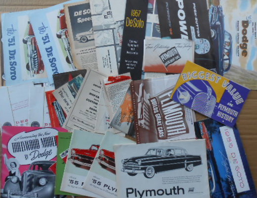 1930’s-1950’s Dodge, DeSoto, Plymouth brochures, 37 items