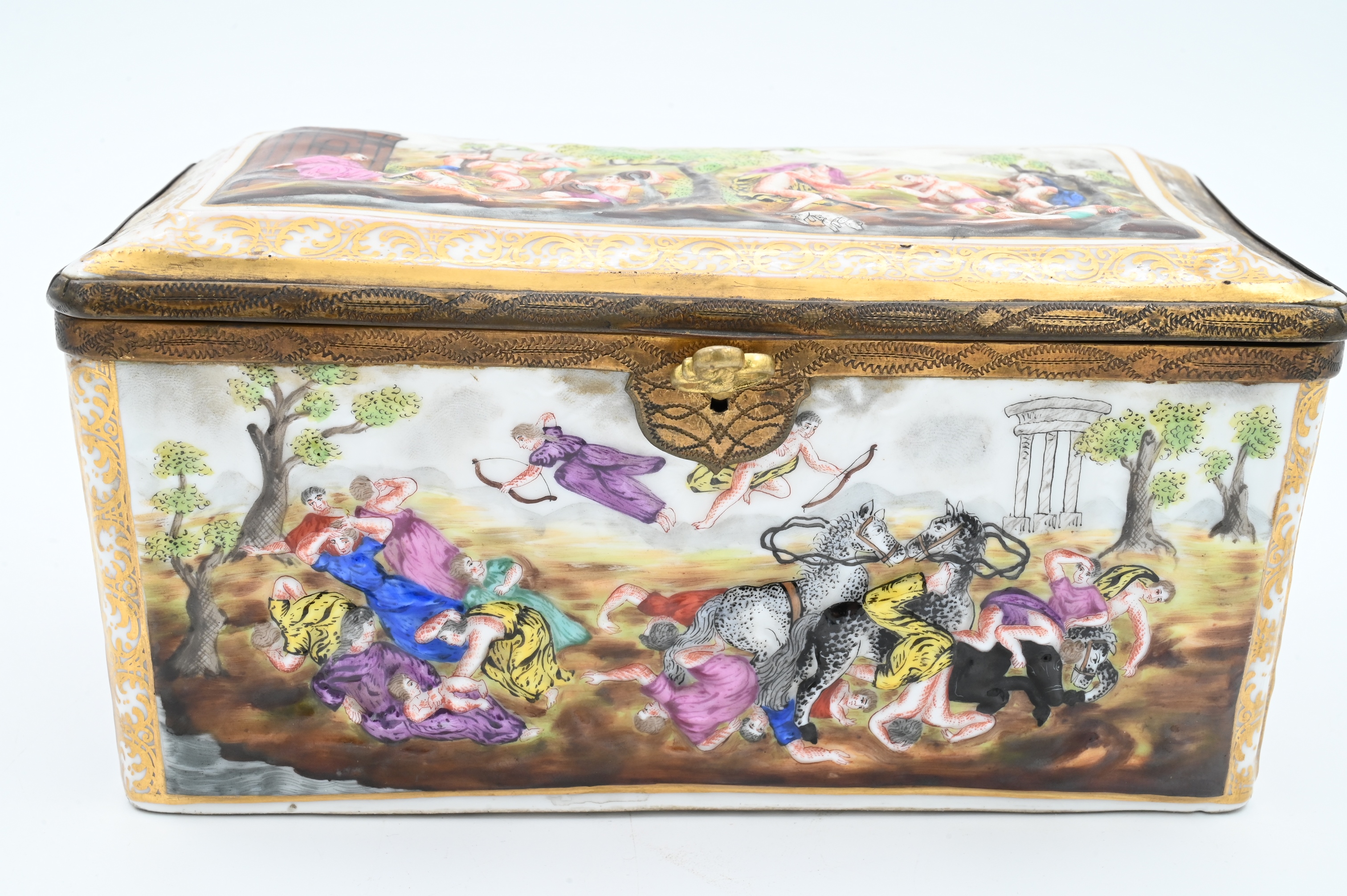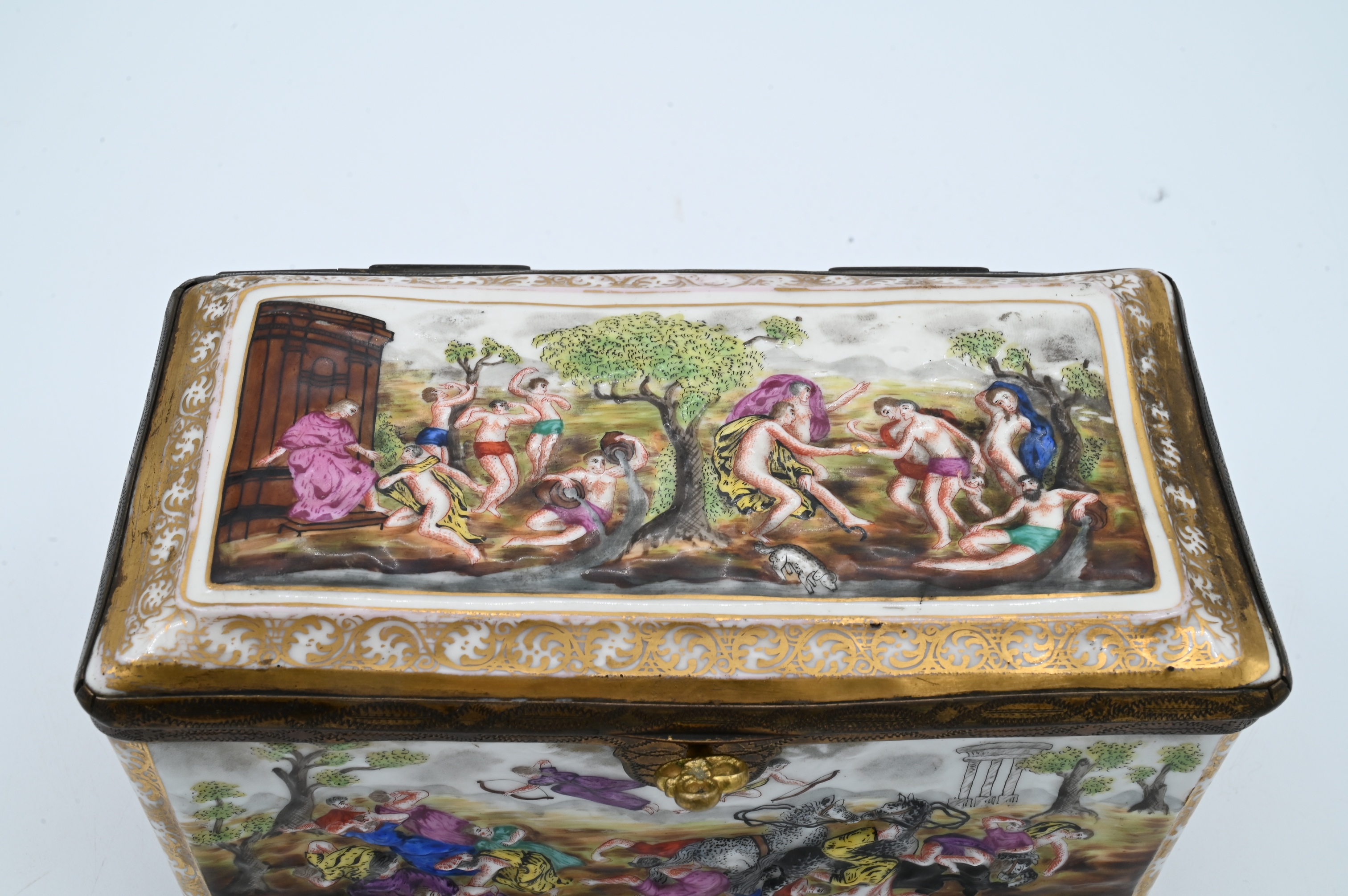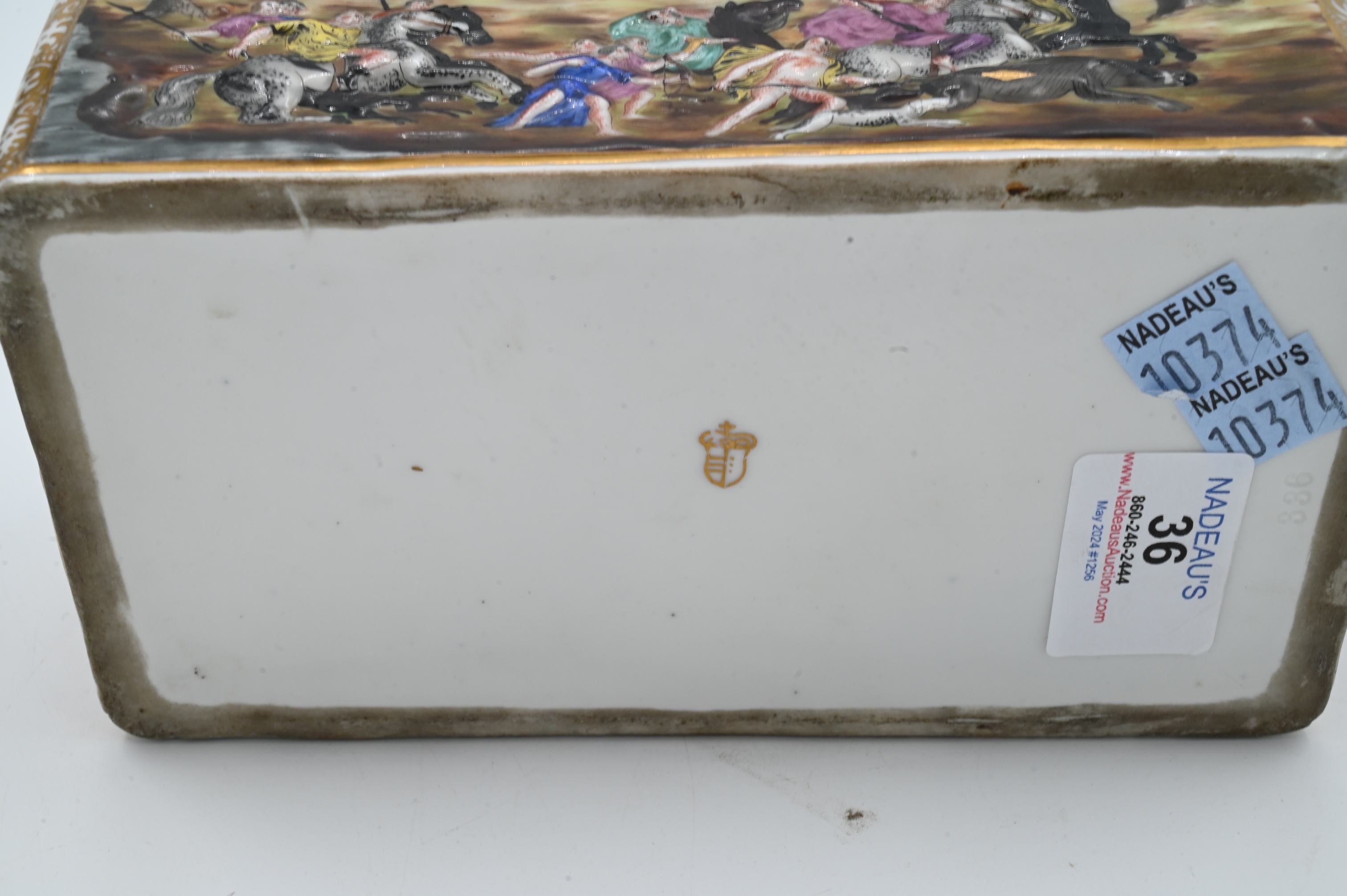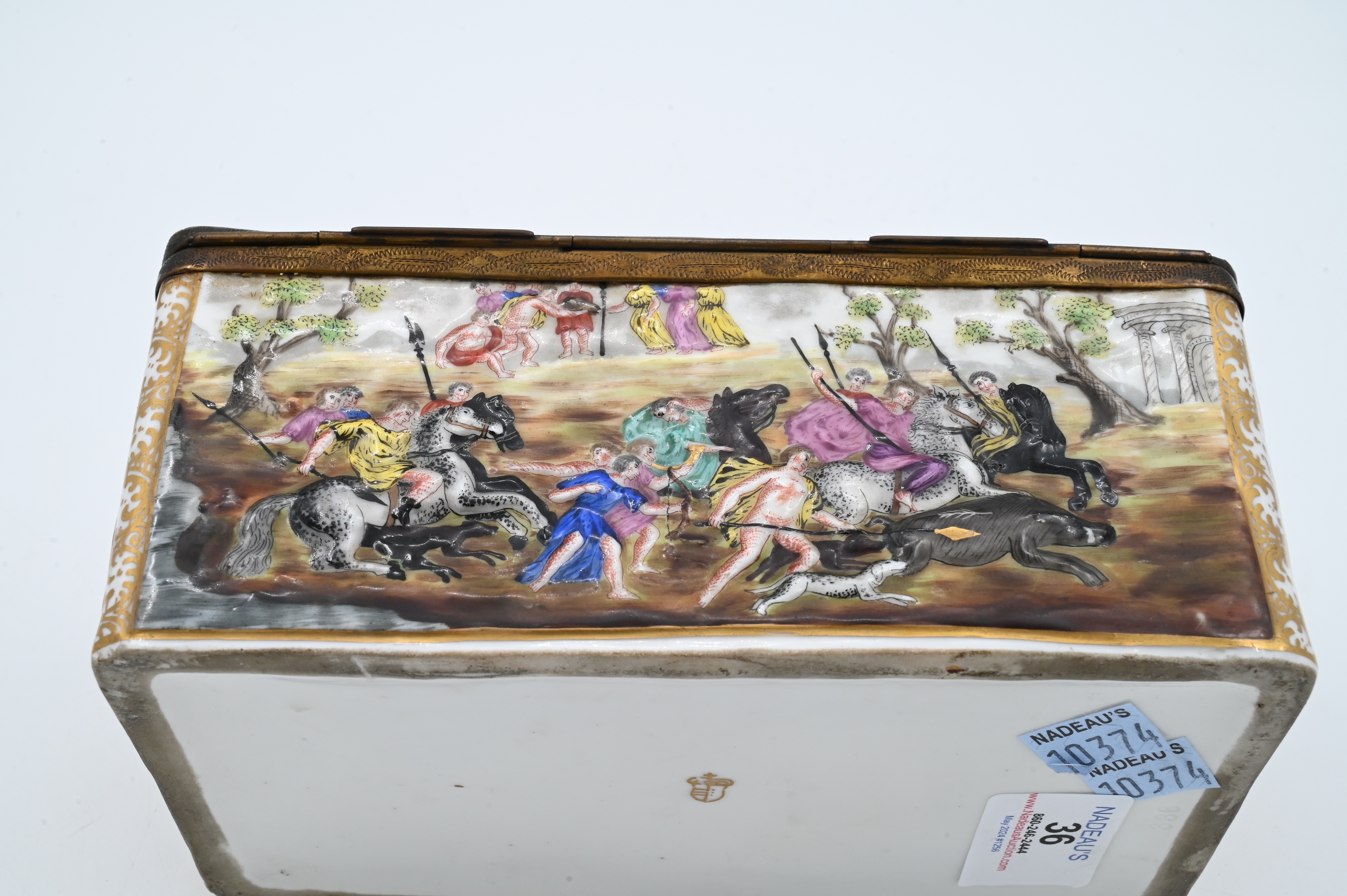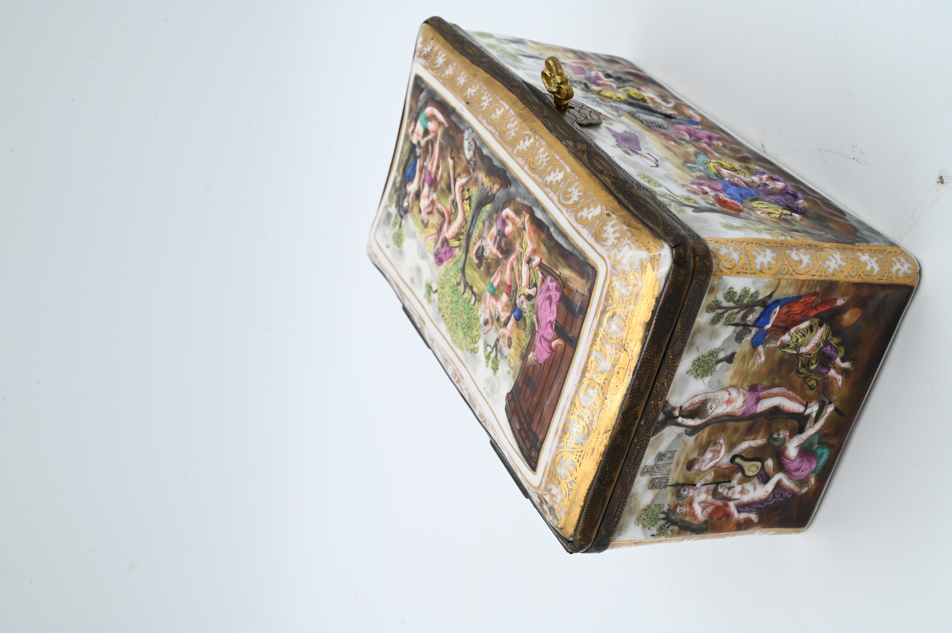 Lot 36: Capodimonte Hinged Covered Box having Embossed Figures