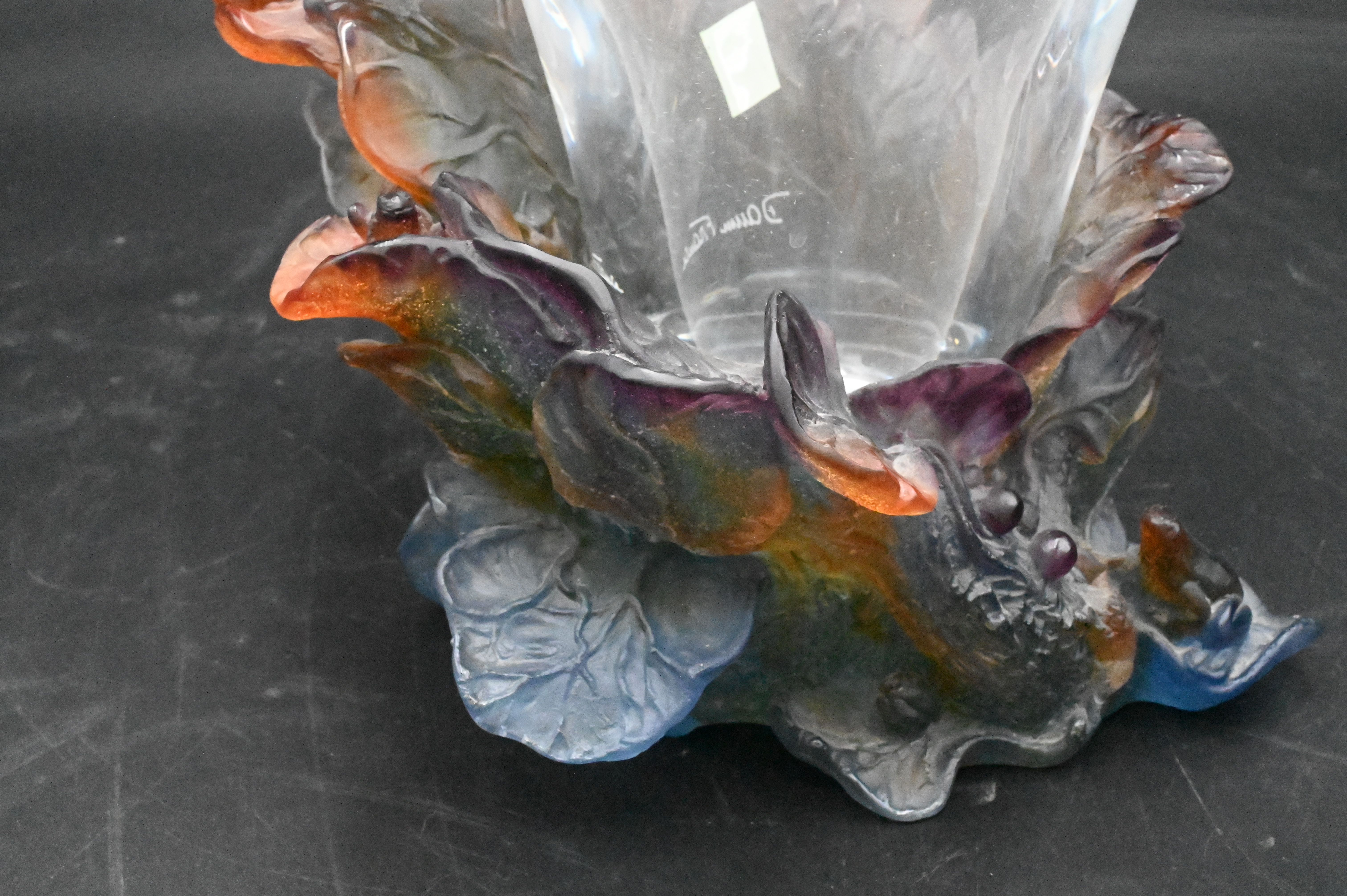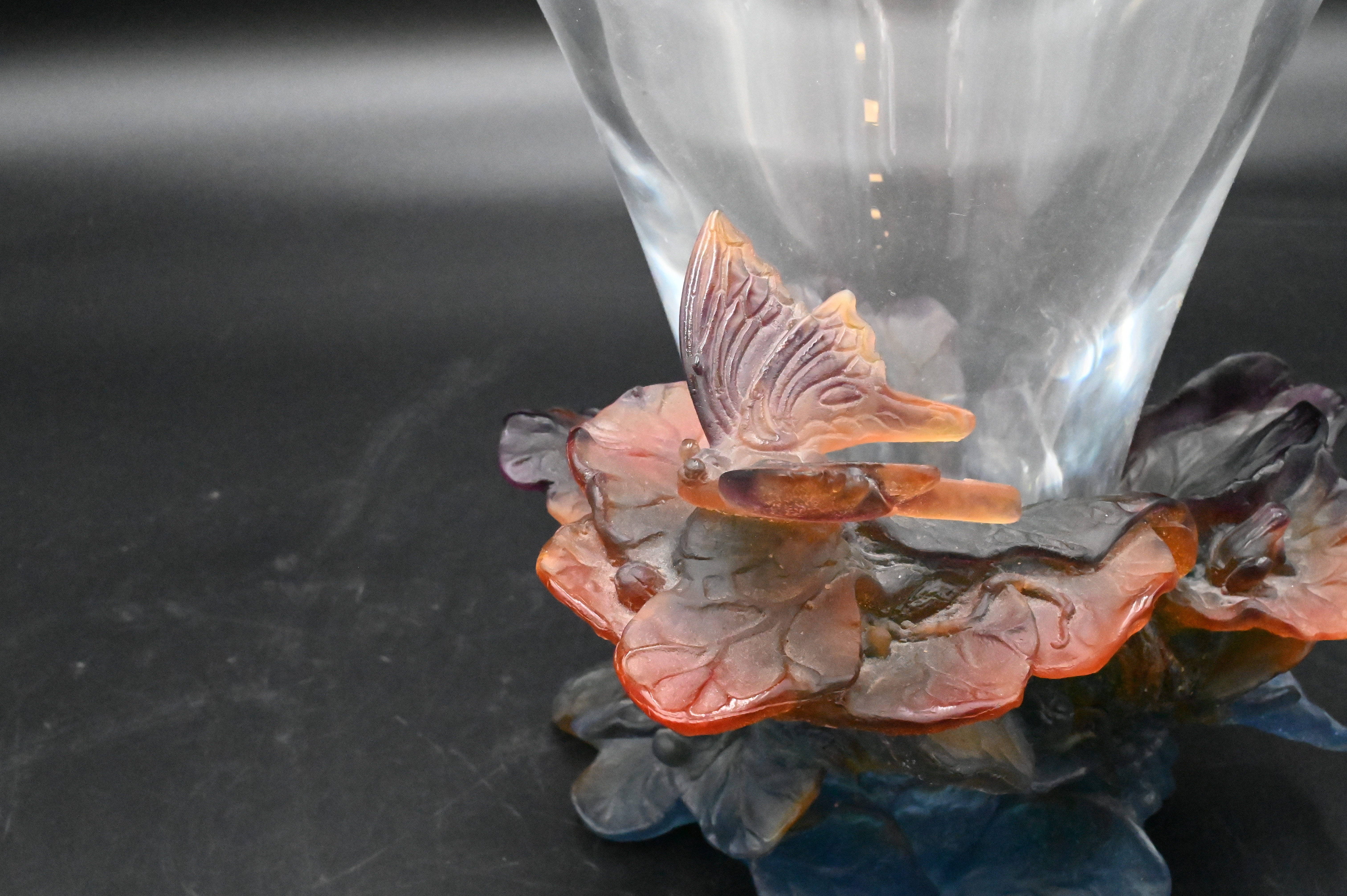 Daum Glass Papillon Vase, having the original box, height 11 3/4 inches.