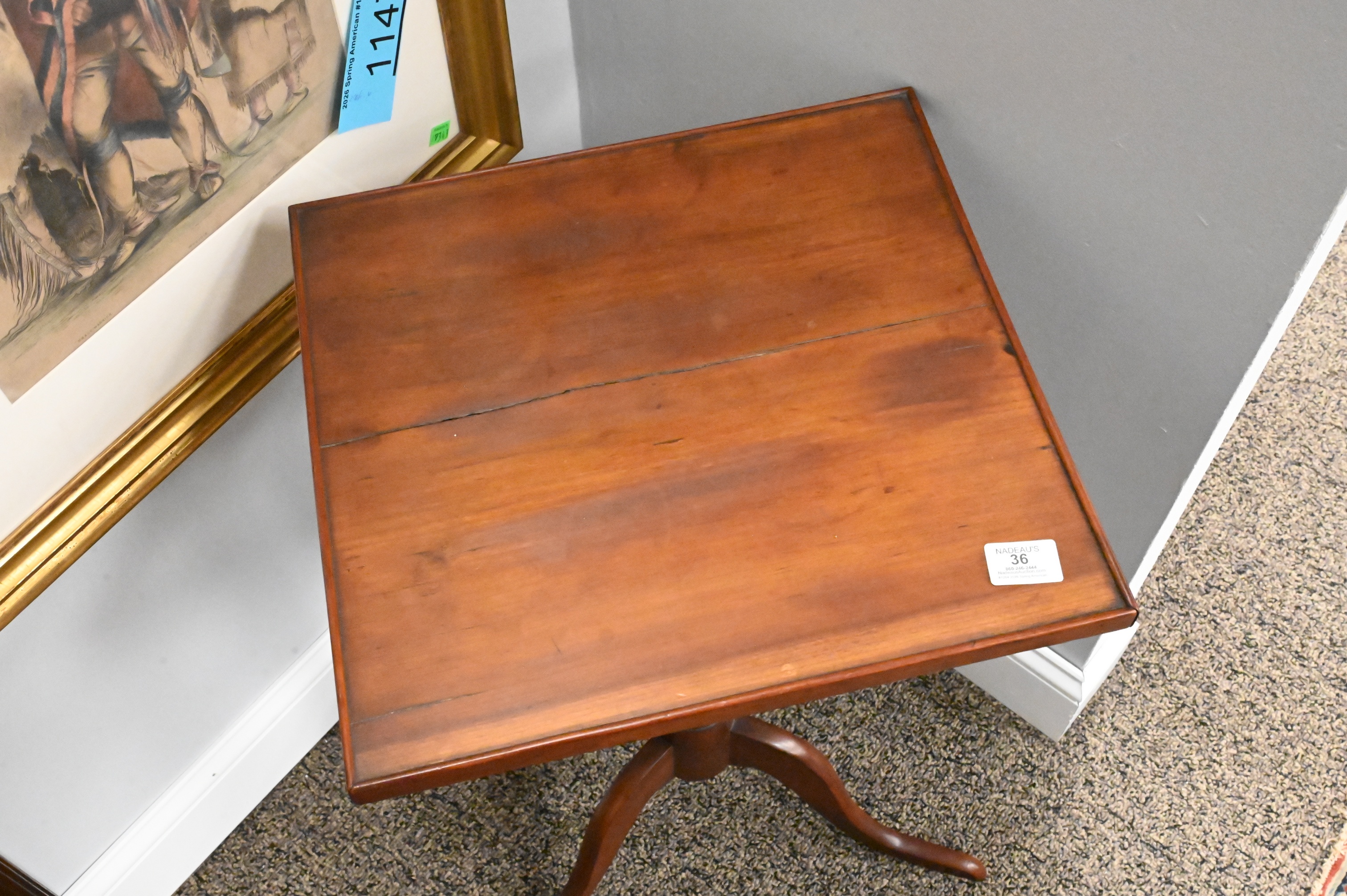 This report is provided by Nadeau’s Auction Gallery as a courtesy and reflects our opinion only. Bidders should conduct their own due diligence. The absence of a report does not imply the lot is free of issues. Assessments are based on visual inspection; unless noted, items have not been examined under UV light, movements and electrical components have not been tested, and artworks are generally not removed from frames. We are not professional conservators, and this report is not a comprehensive condition evaluation. Images provided form part of the report and should be reviewed carefully. All sales are final. For in-person inspection, please call 860-246-2444 or email info@nadeausauction.com.