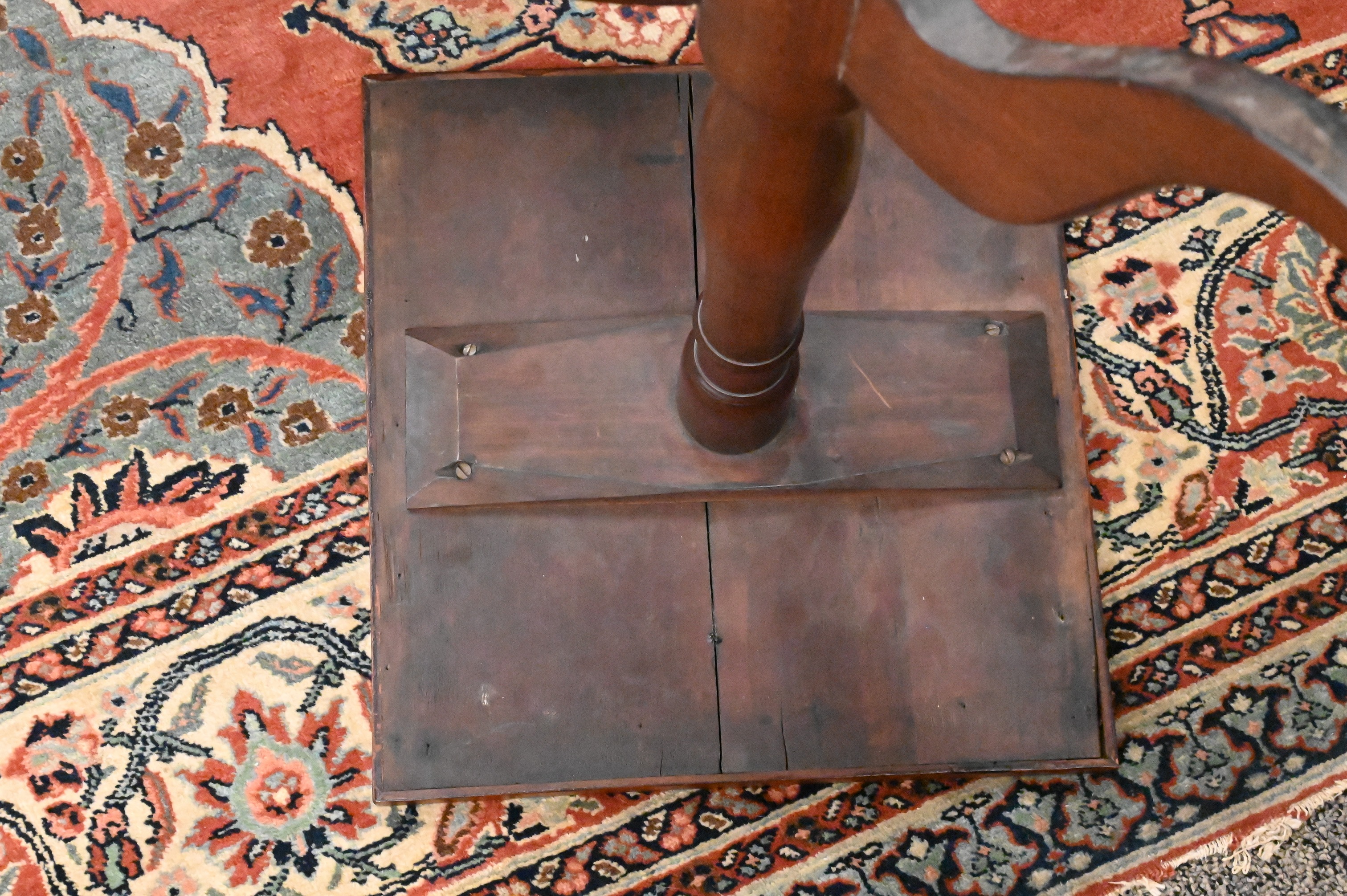 molded square top on slender turned shaft set on tripod base, circa 1800