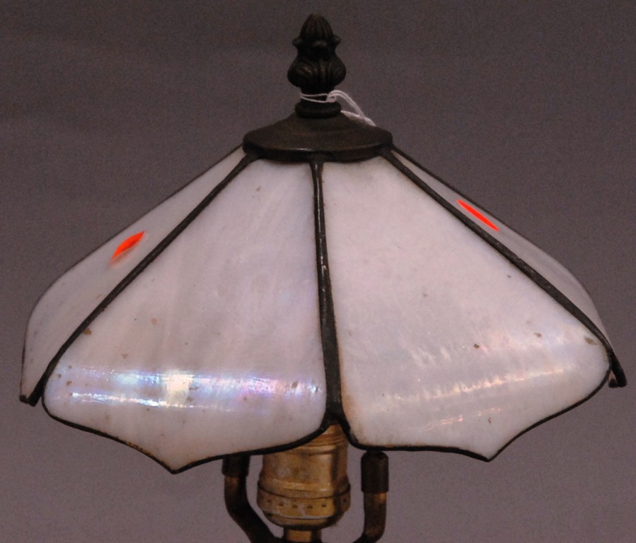 Handel small table lamp with iridescent white leaded shade. Ht. 16.