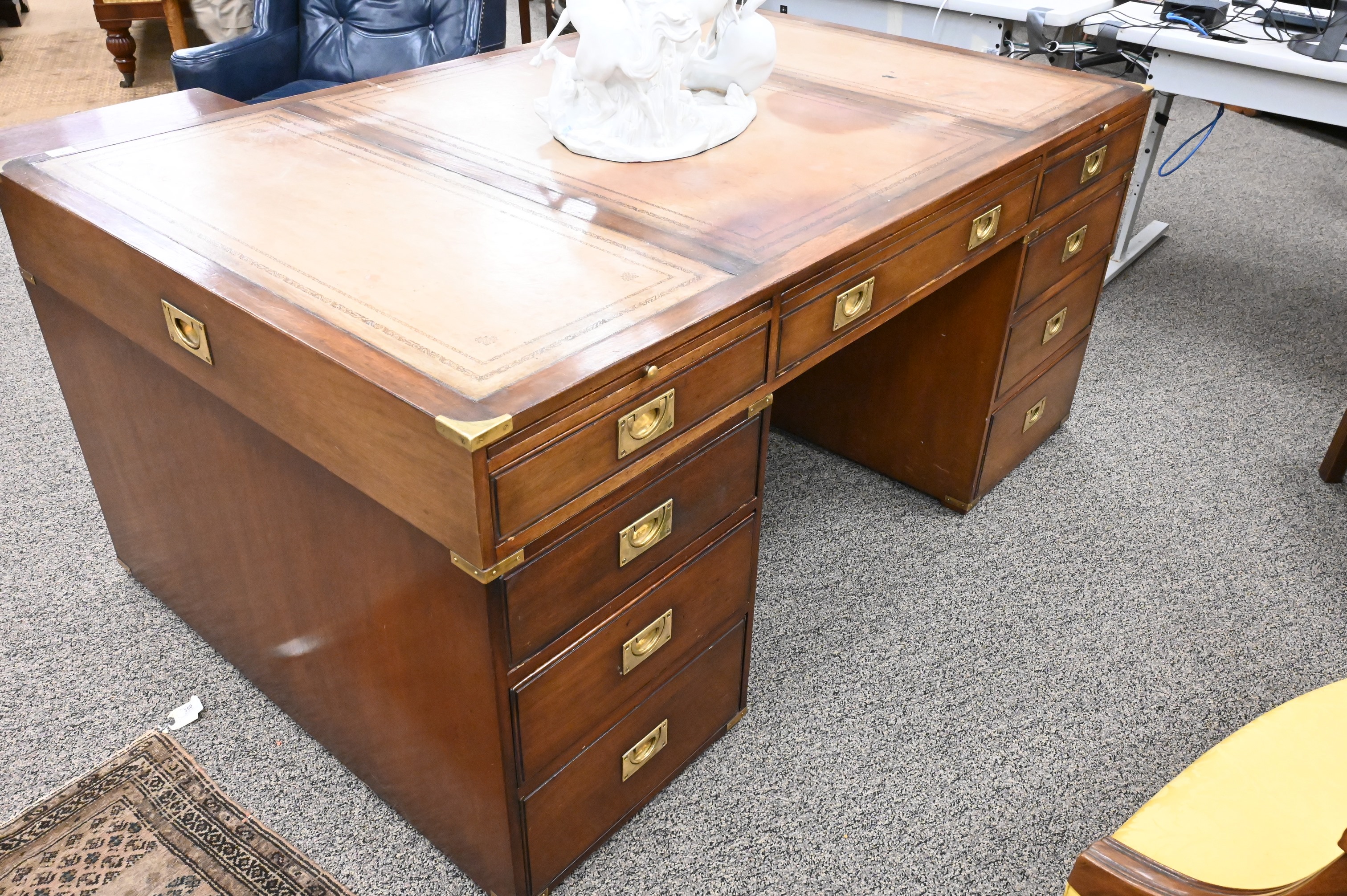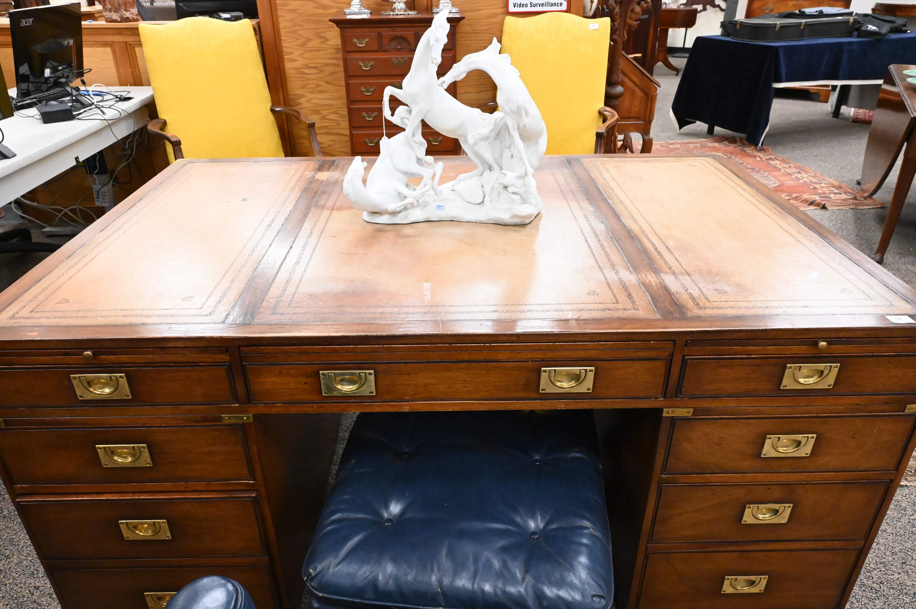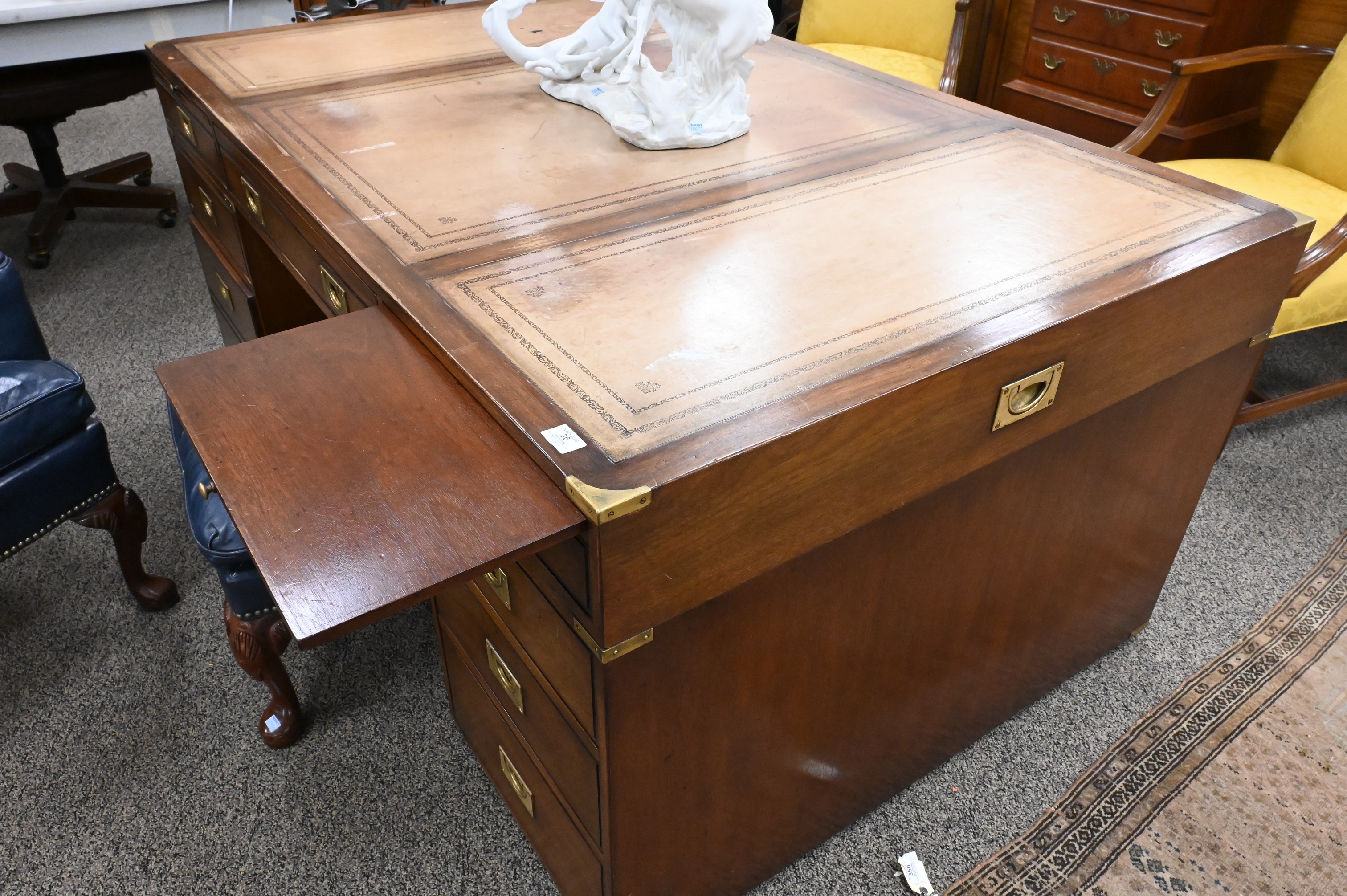 Lot 36: Kennedy Furniture Mahogany Campaign Style Partner’s Pedestal Desk