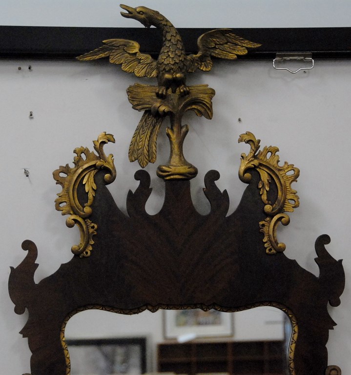 Mahogany Chippendale style mirror with eagle finial, ht. 56in.