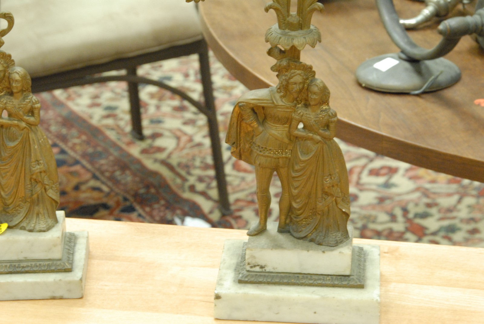 Three piece Victorian Girandole set, with marble bases, no prisms.